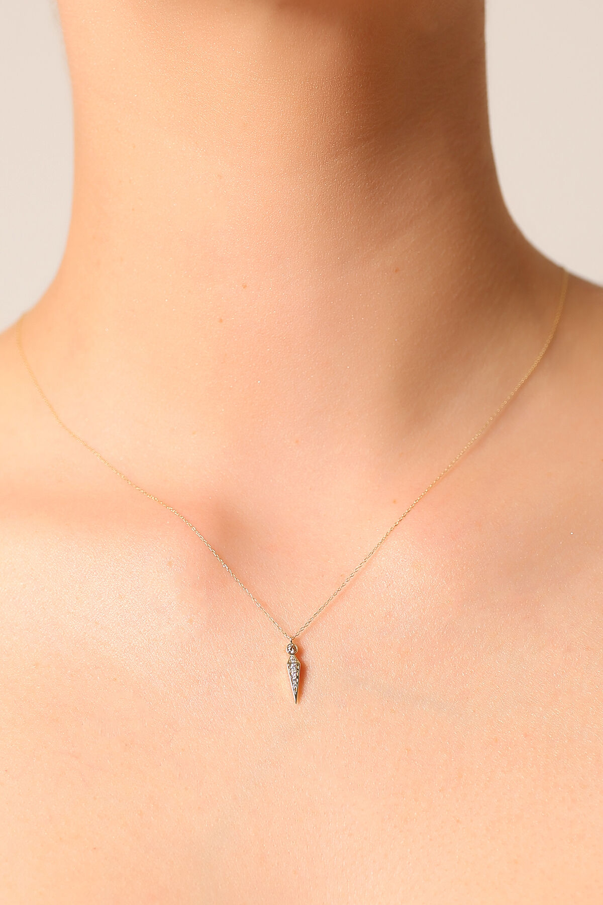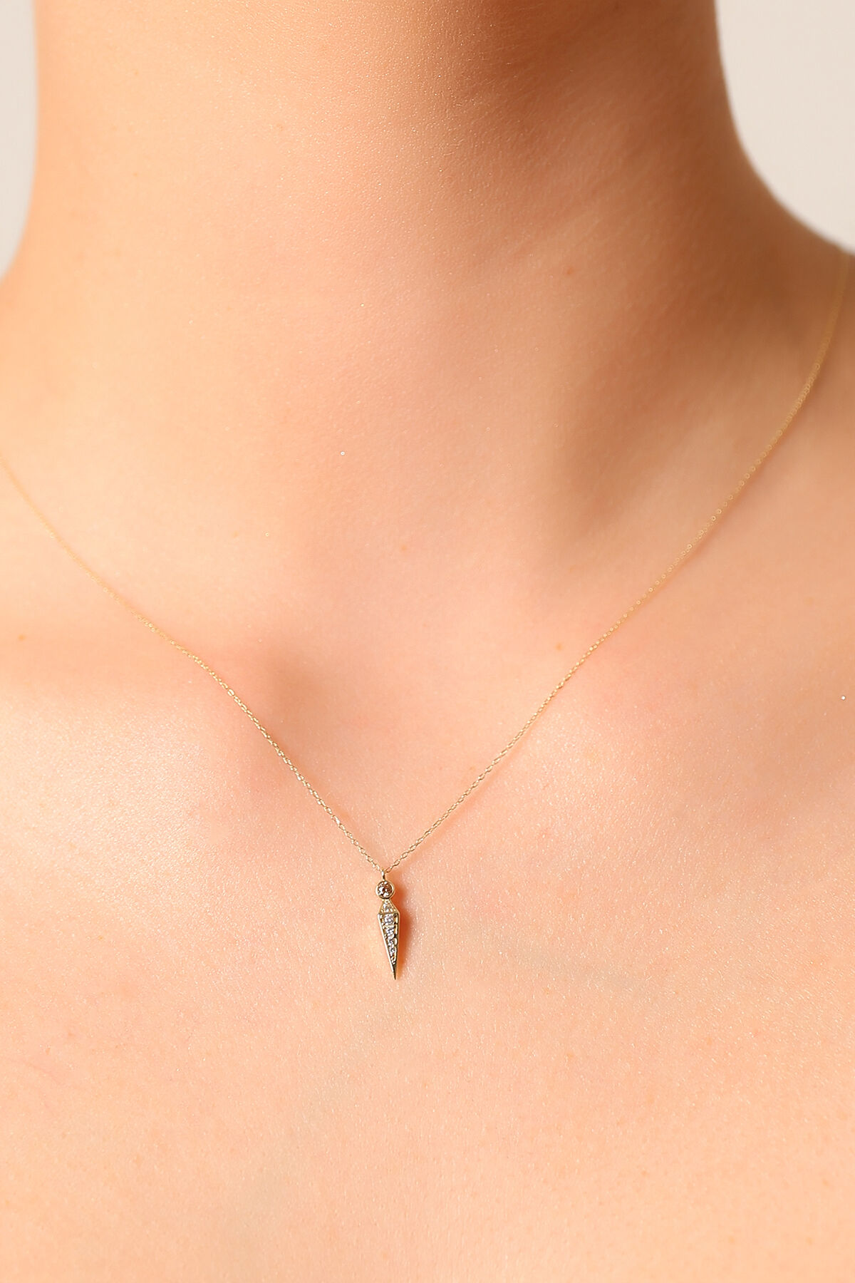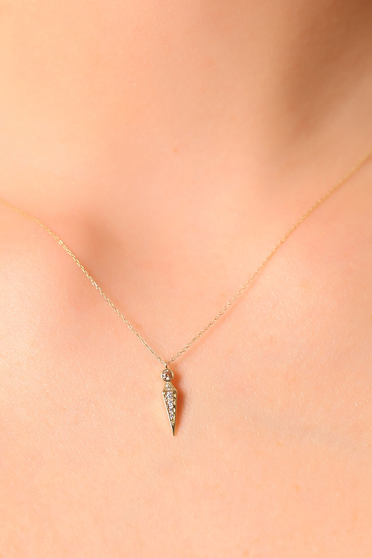 Kolyecik 14 Ayar Altın Şampanya Taş Sivri Uç Kolye