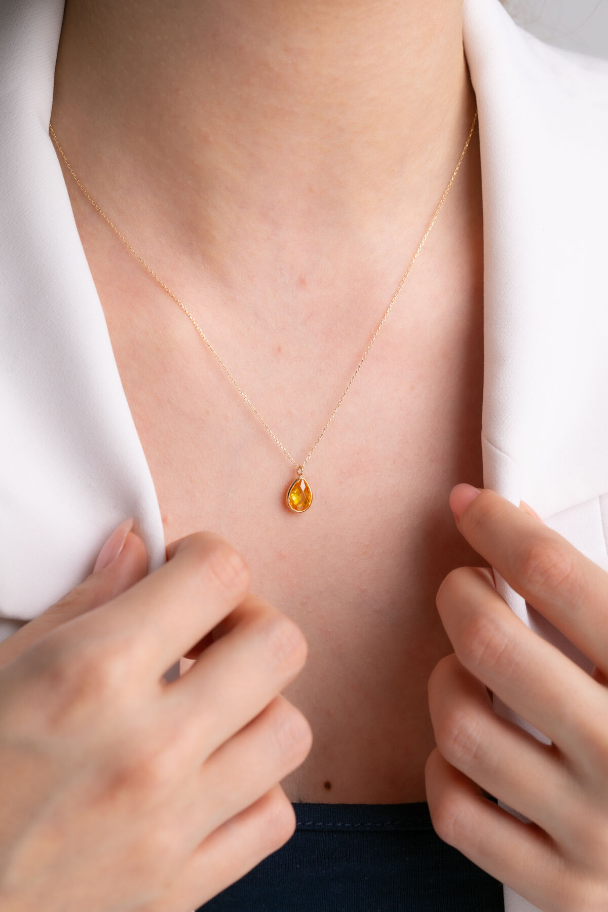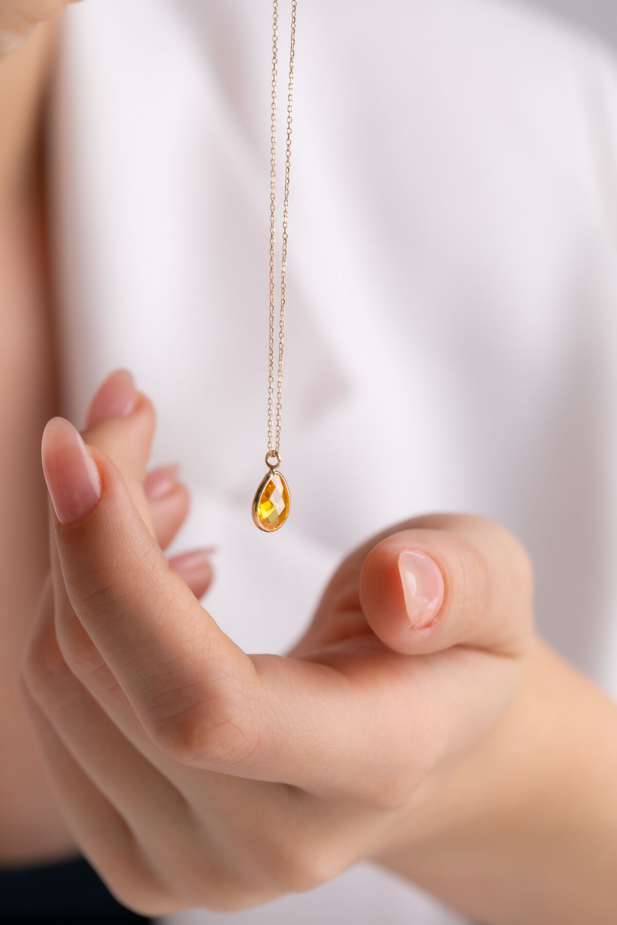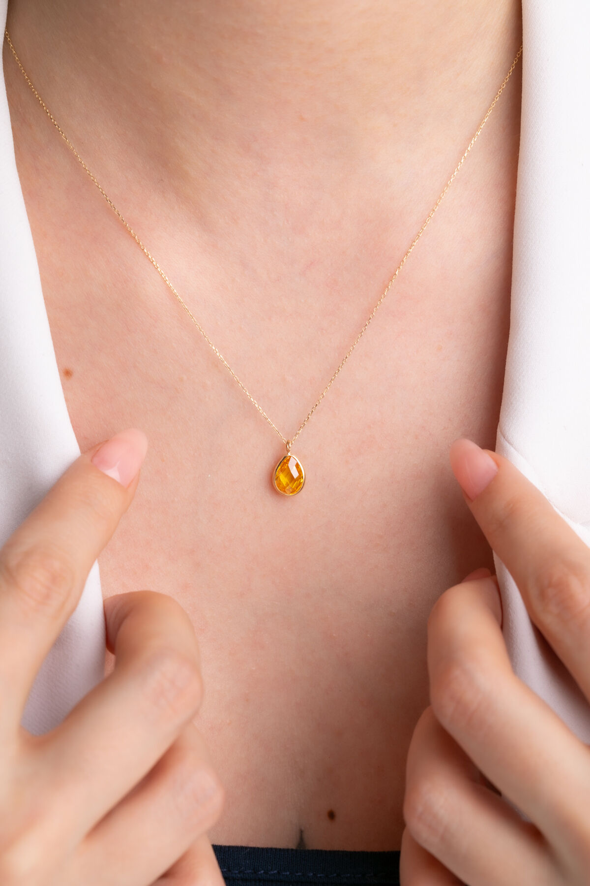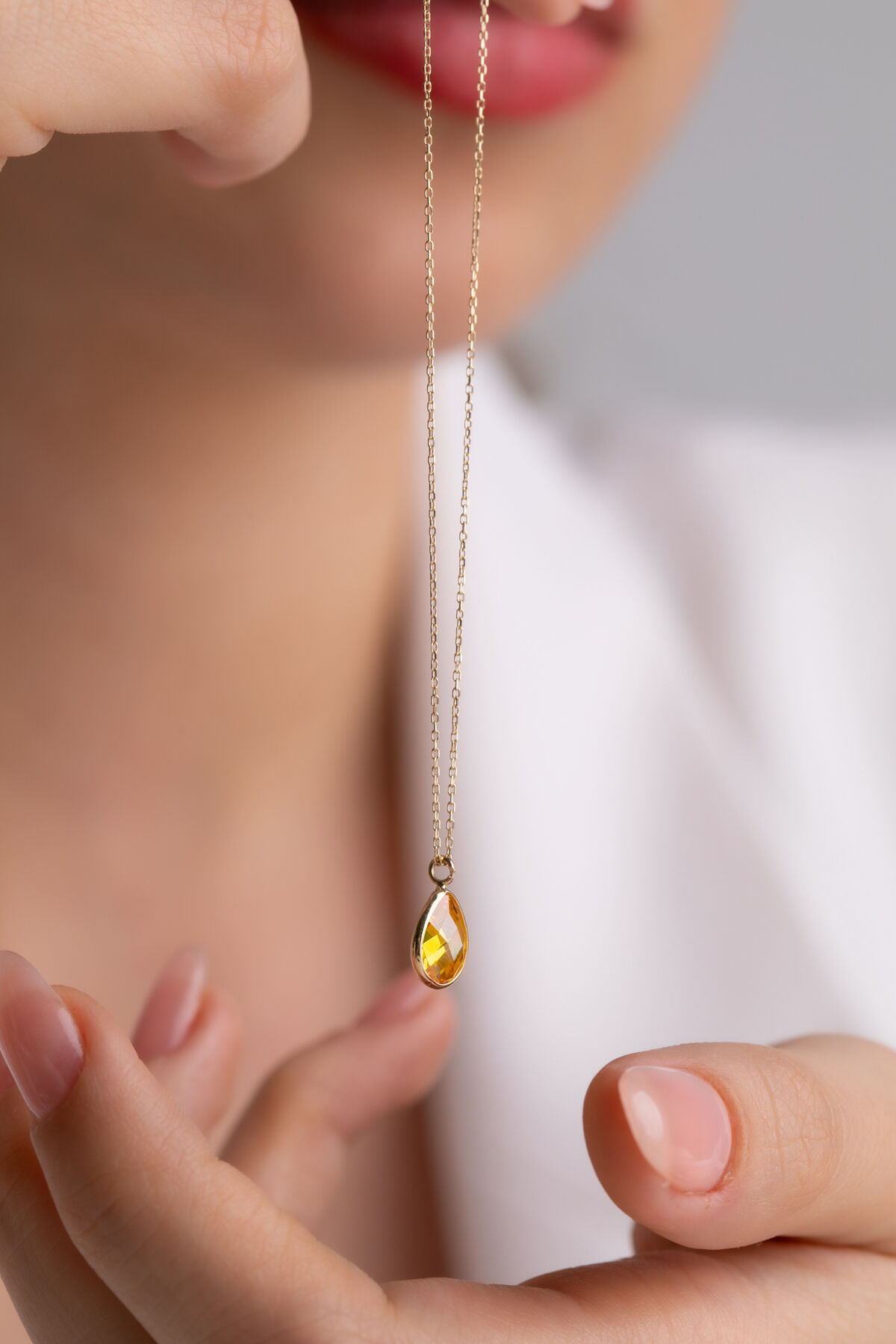 Kolyecik 14 Ayar Altın Sarı Damla Taş Kolye