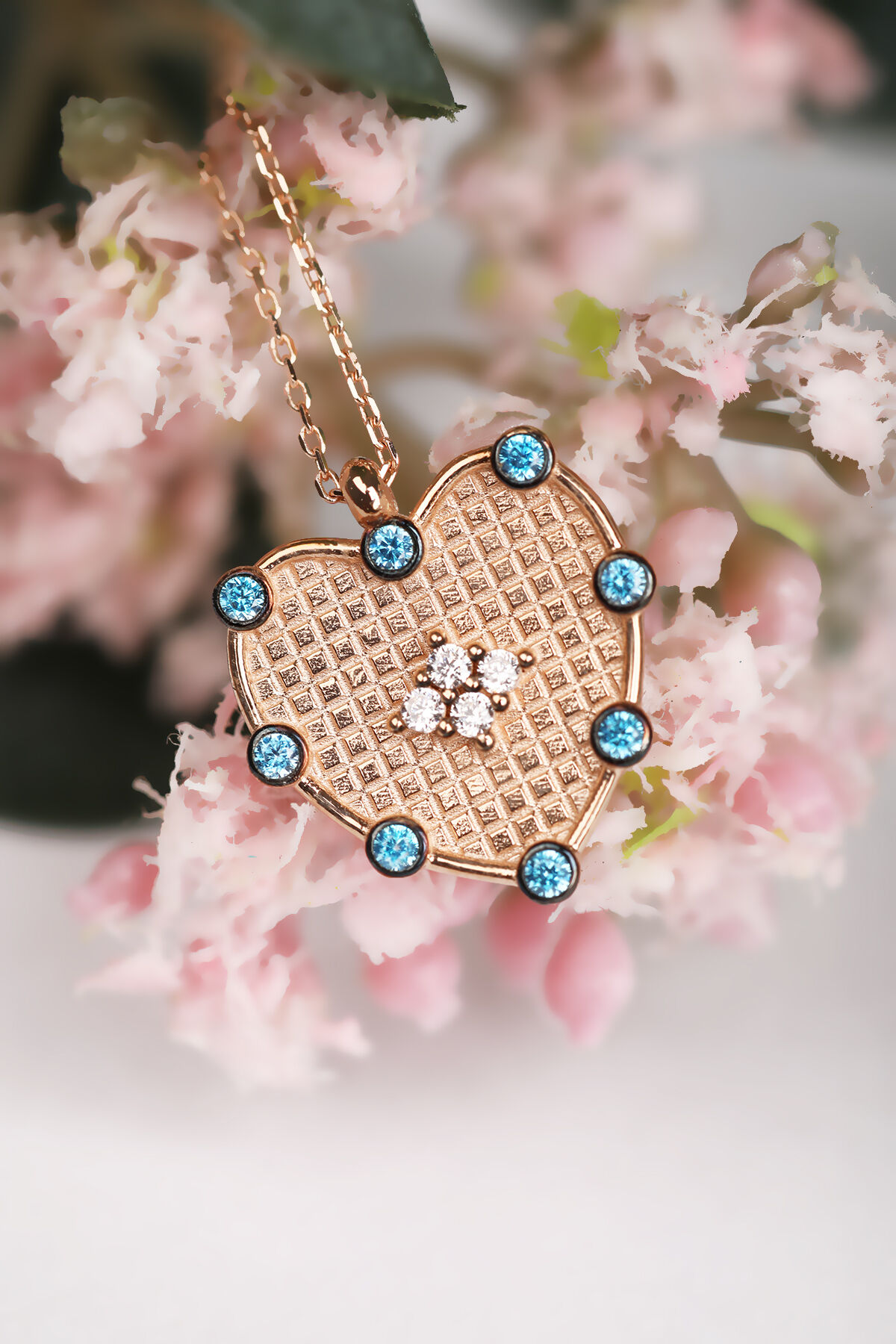 Kolyecik 14 Ayar Altın Serpme Taşlı Kalp Kolye