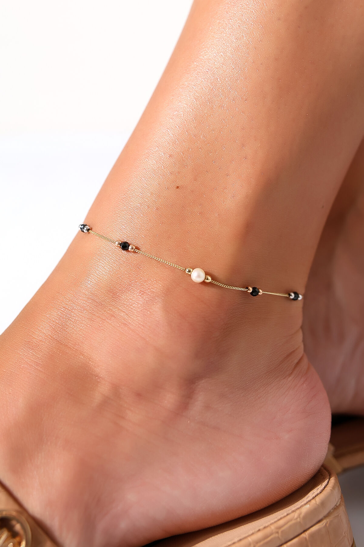 Kolyecik 14 Ayar Altın Siyah Taş İncili Halhal
