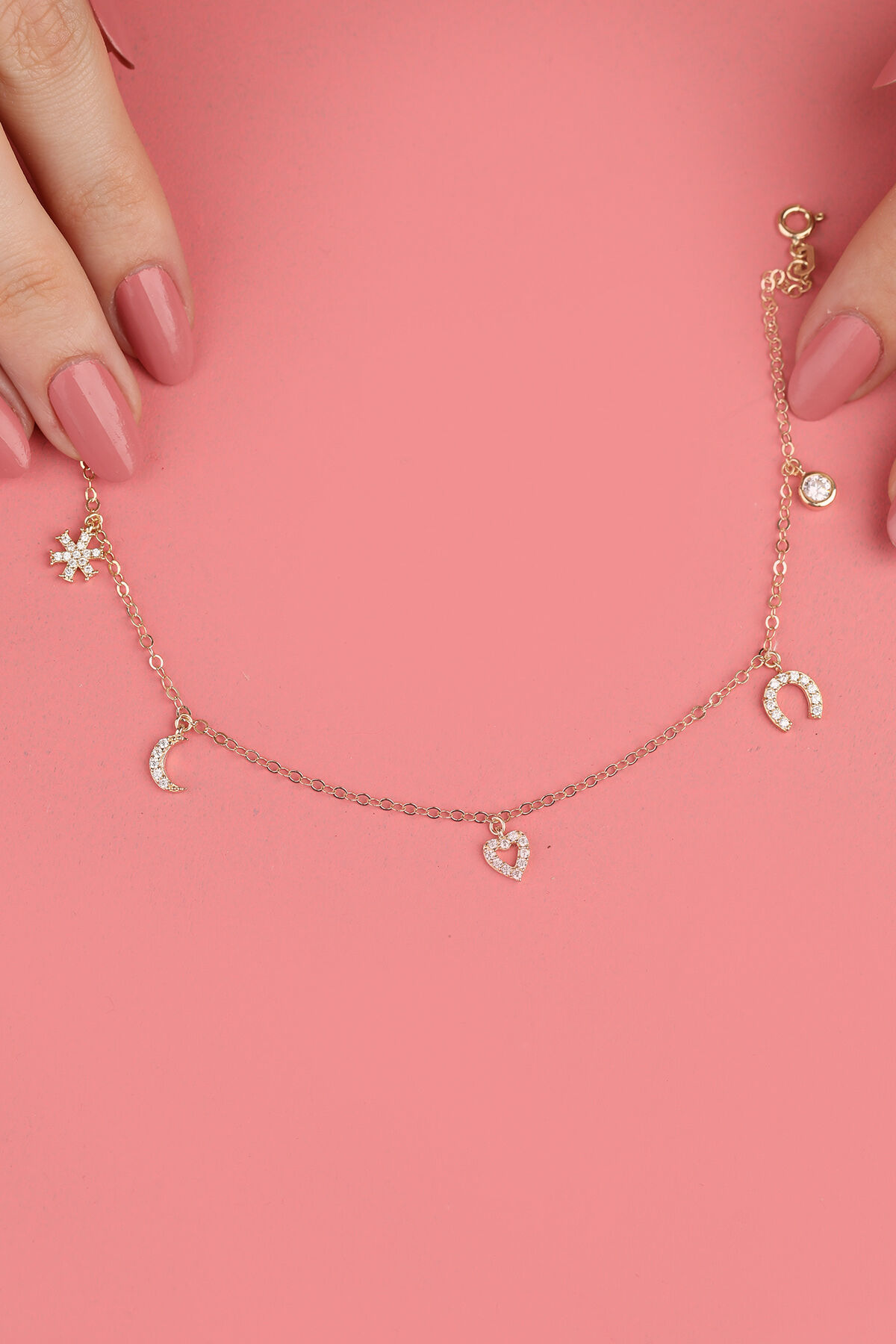 Kolyecik 14 Ayar Altın Taş Dizimli Figürlü Halhal