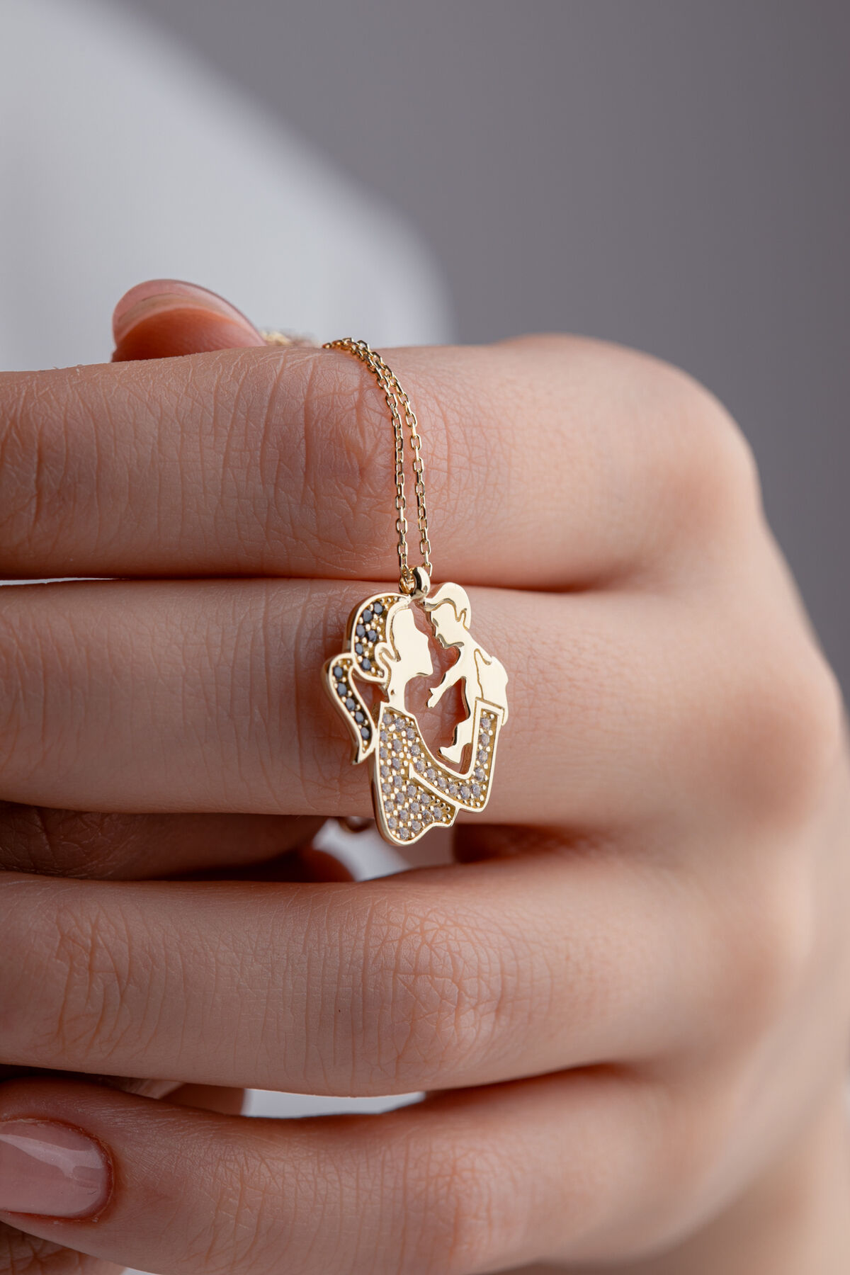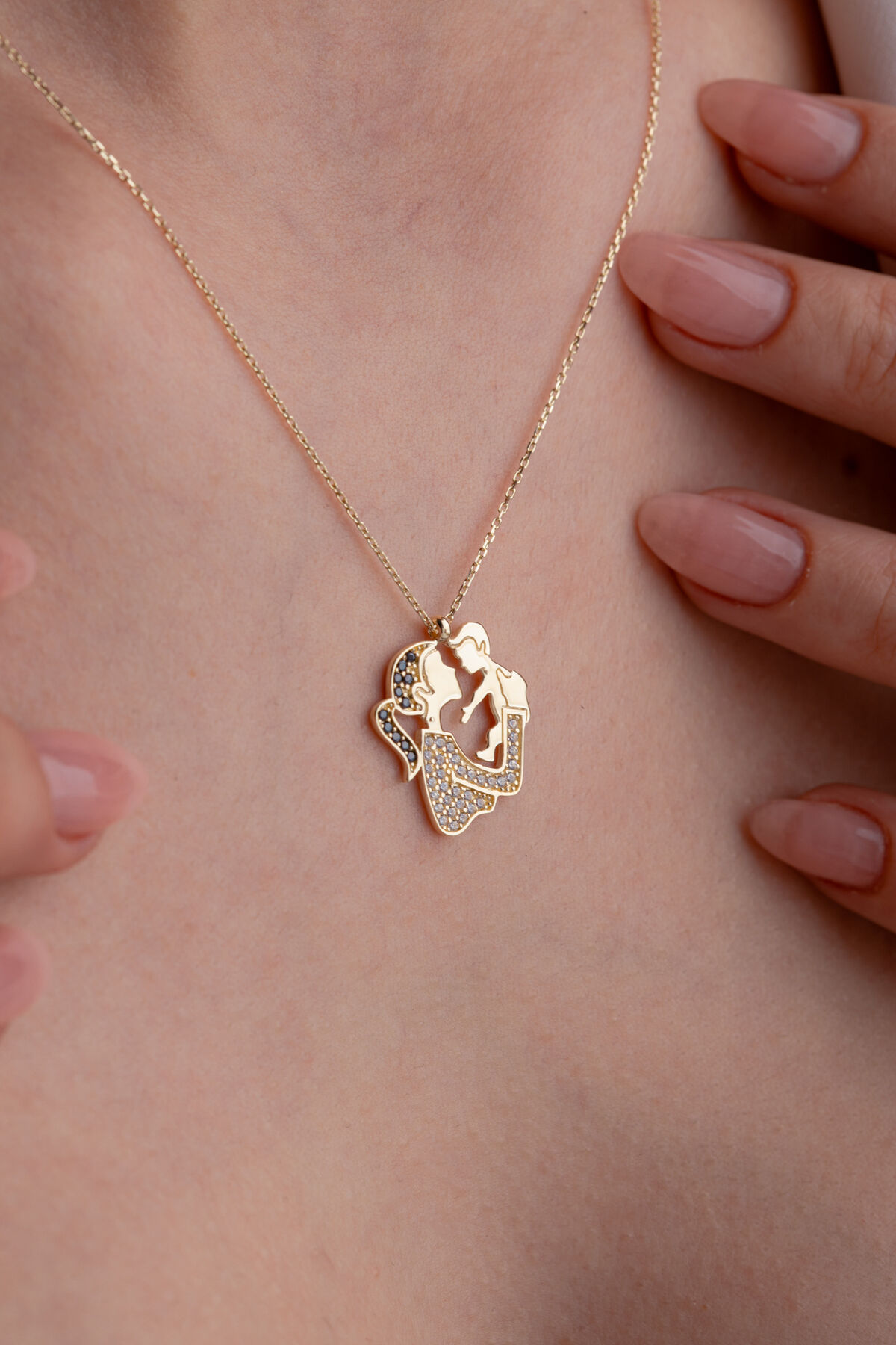 Kolyecik 14 Ayar Altın Taşlı Anne Çocuk Kolye