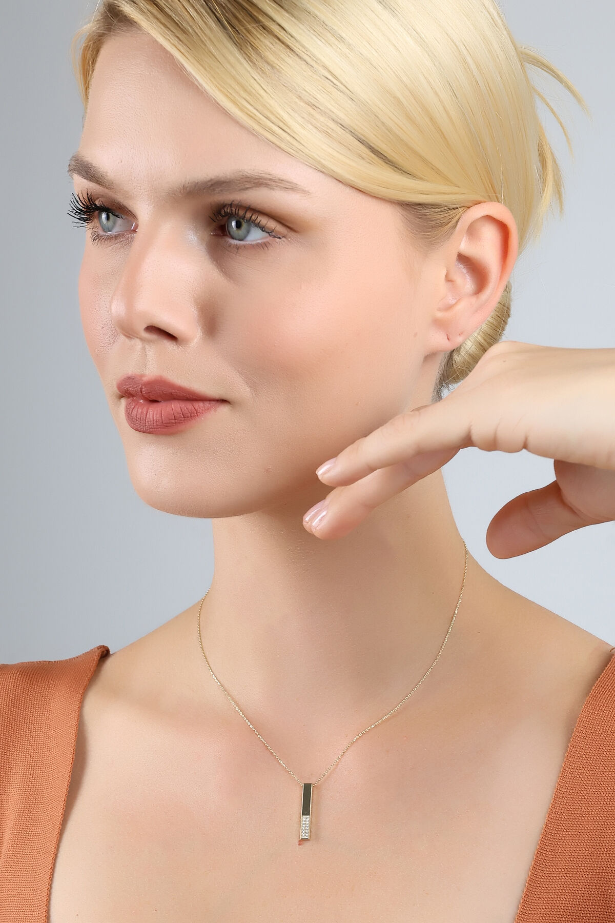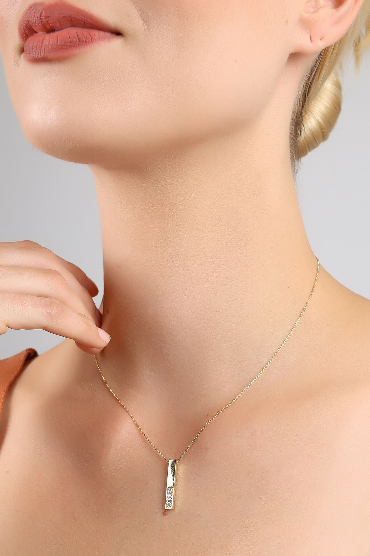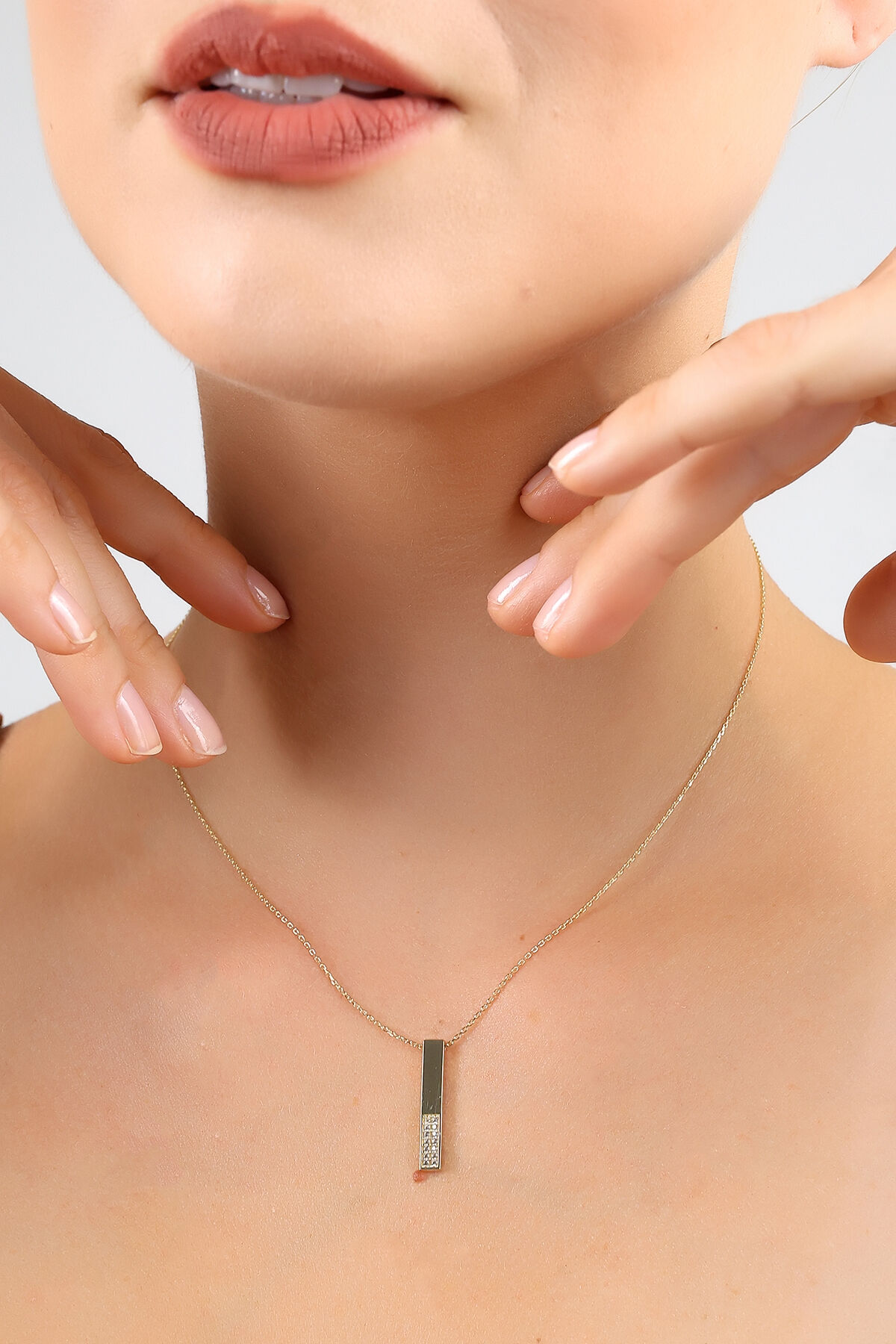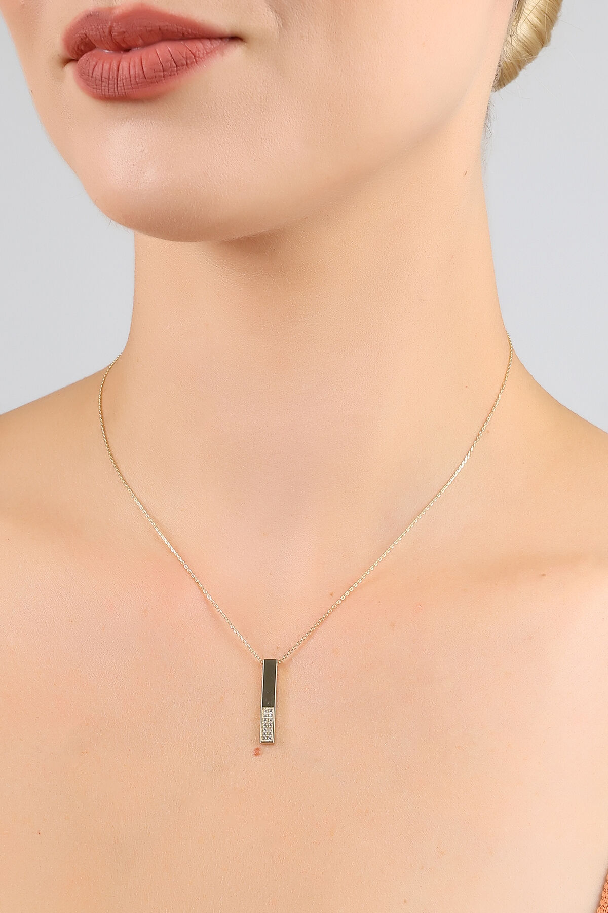 Kolyecik 14 Ayar Altın Taşlı Çubuk Kolye