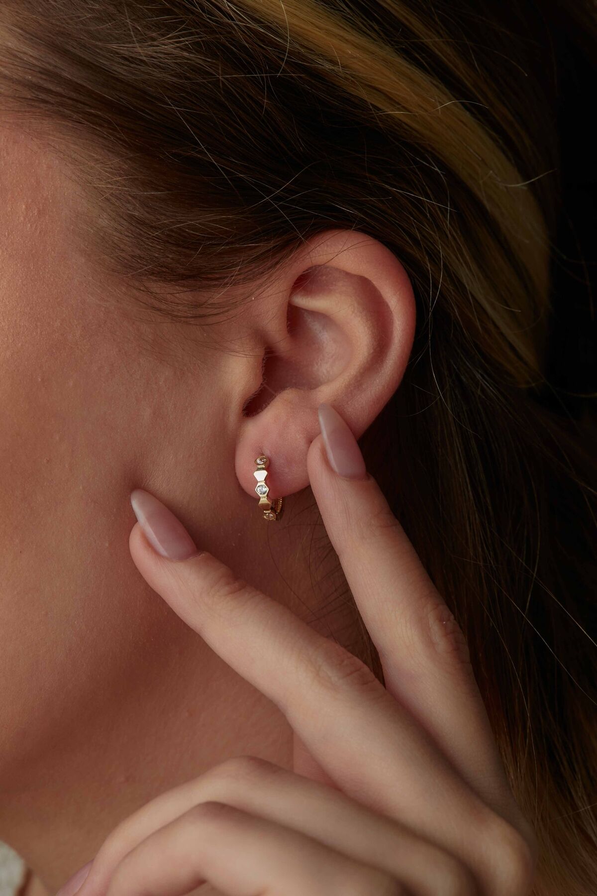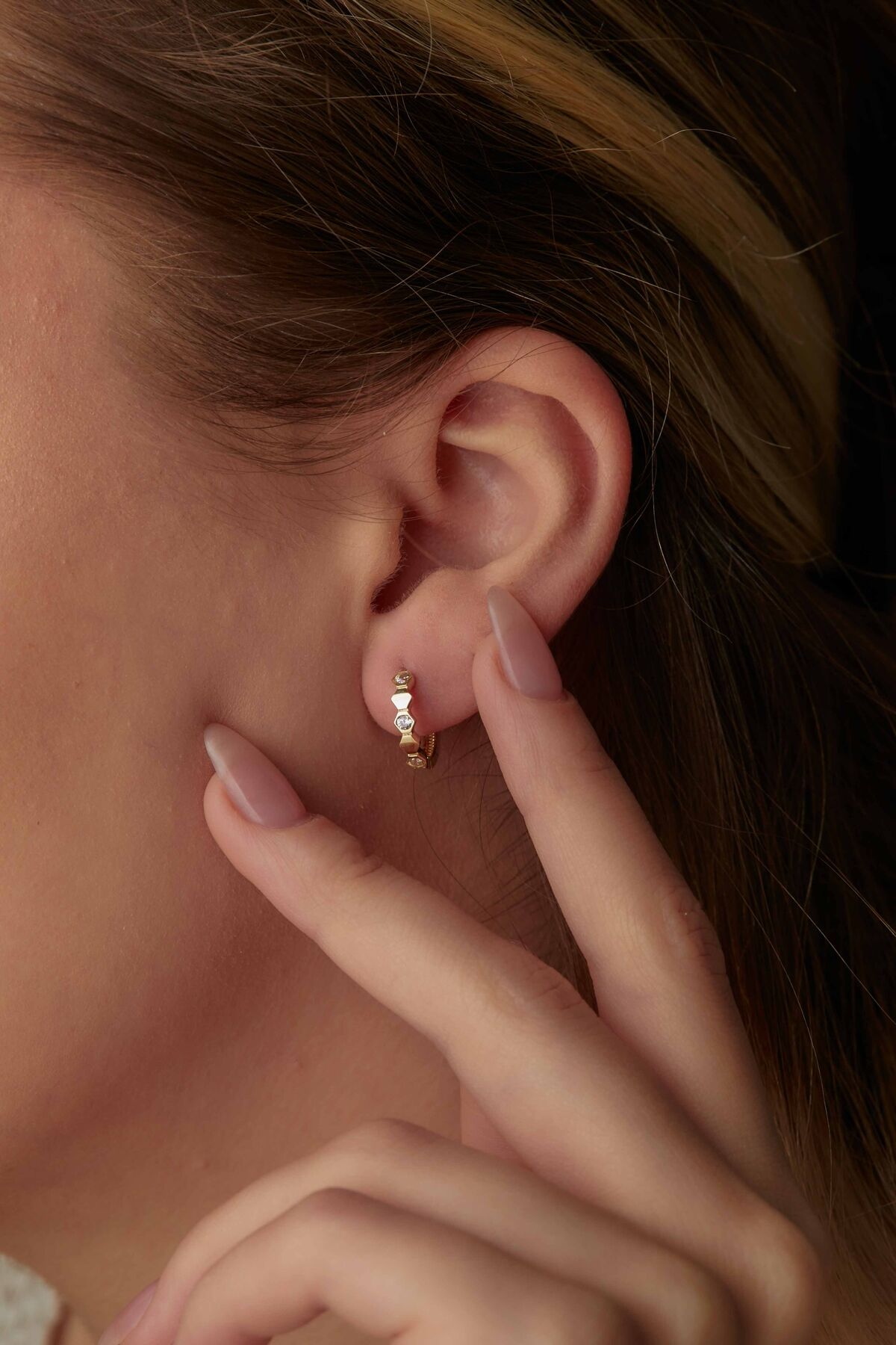 Kolyecik 14 Ayar Altın Taşlı Halka Küpe