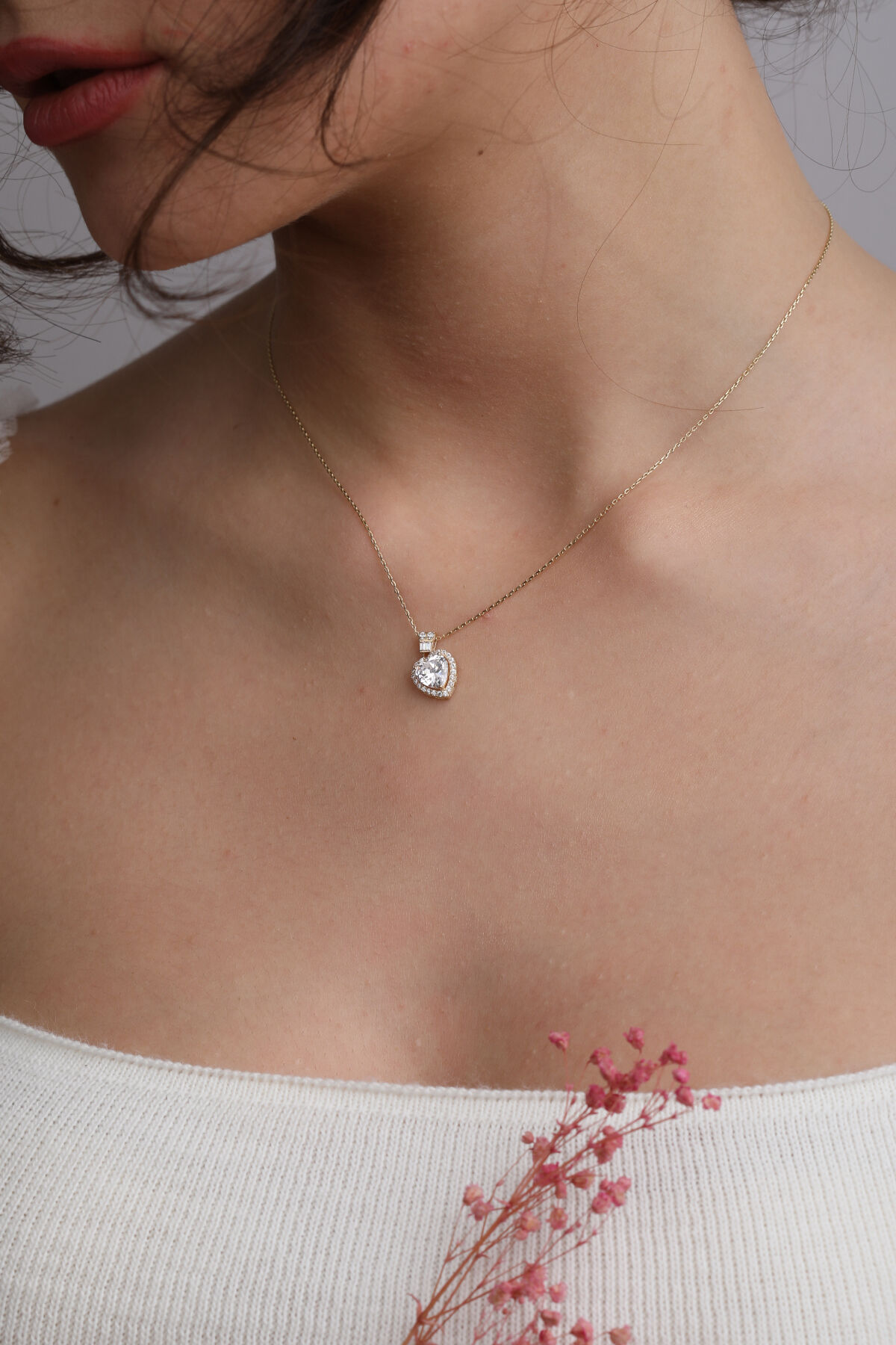 Kolyecik 14 Ayar Altın Taşlı Kalp Kolye
