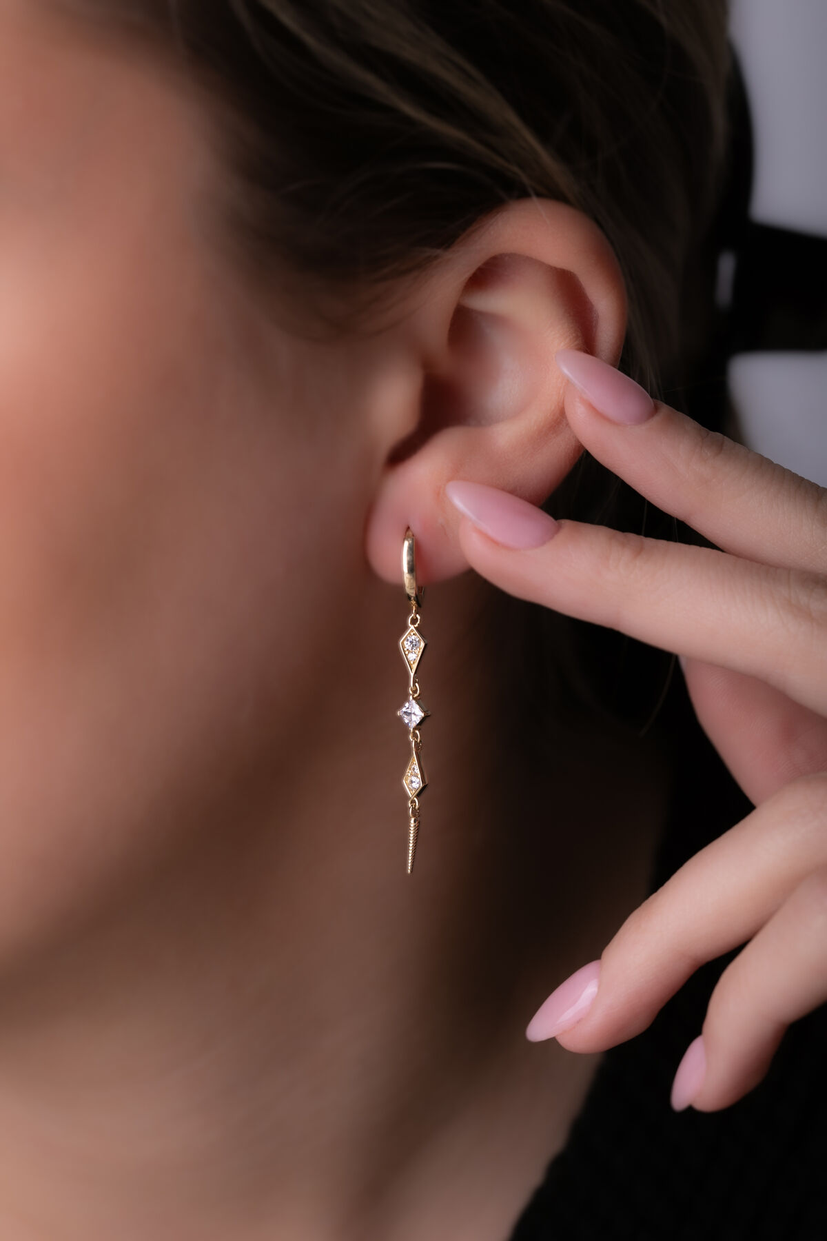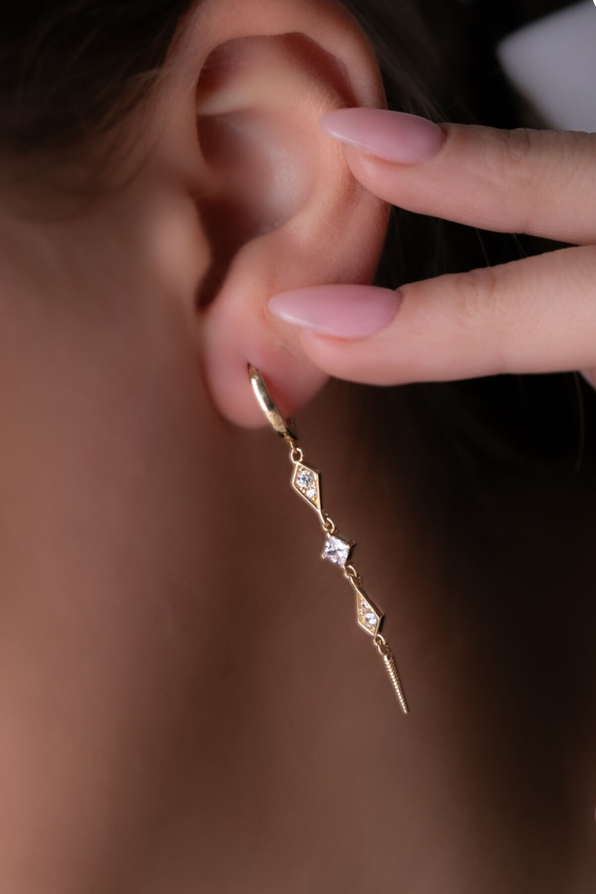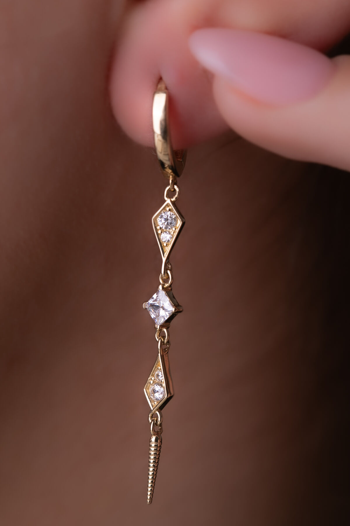 Kolyecik 14 Ayar Altın Taşlı Sallantılı Küpe