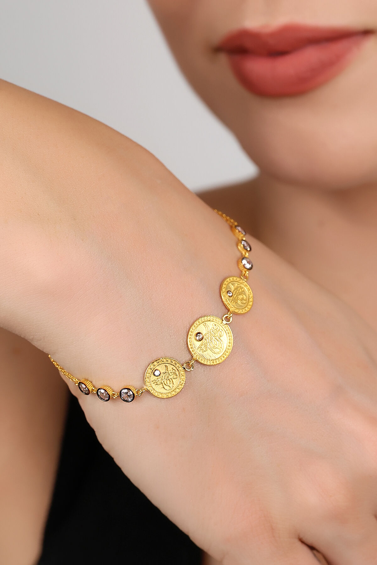 Kolyecik 14 Ayar Altın Taşlı Tuğra Bileklik