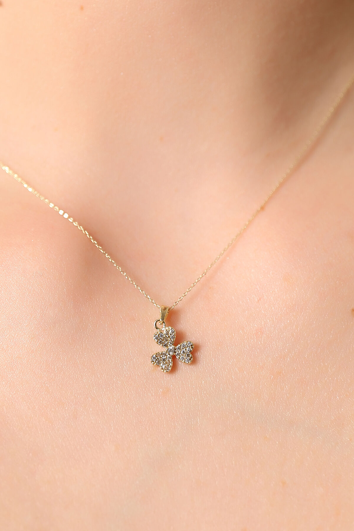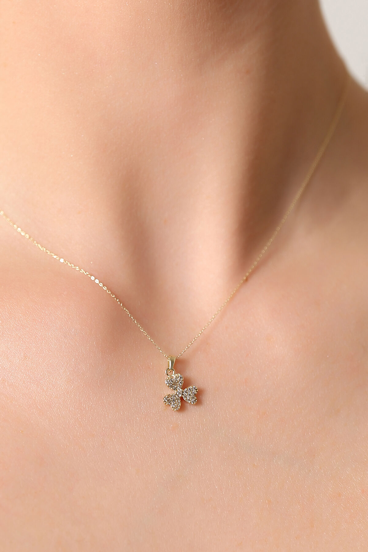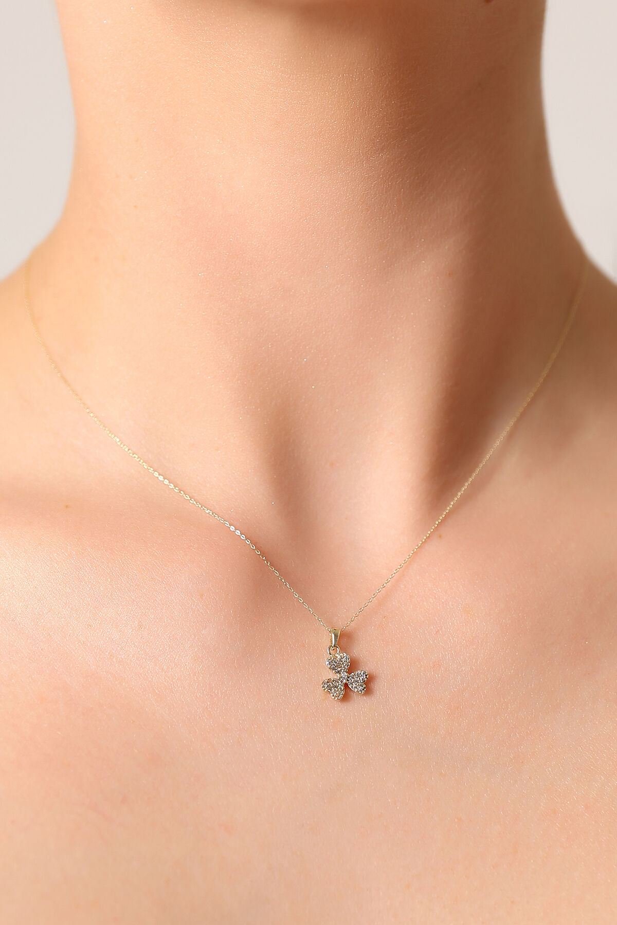Kolyecik 14 Ayar Altın Taşlı Yonca Kolye
