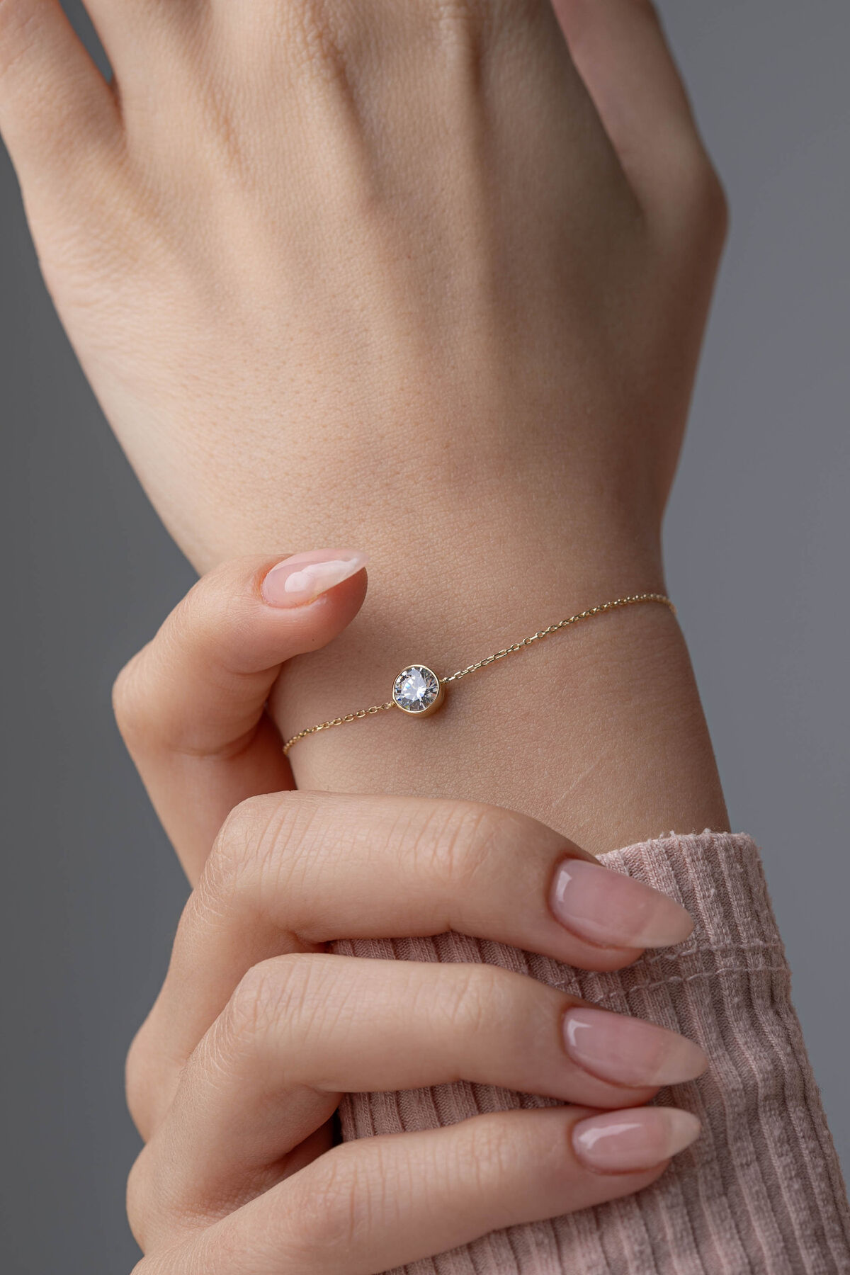 Kolyecik 14 Ayar Altın Tektaş Bileklik