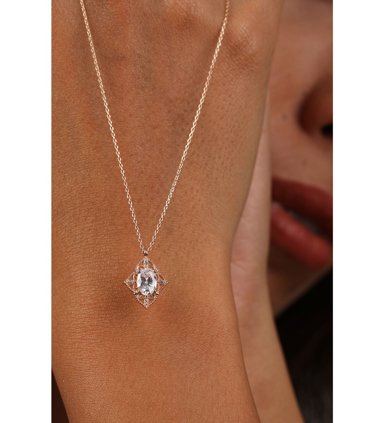 Kolyecik 14 Ayar Altın Telkari Oval Taş Kolye