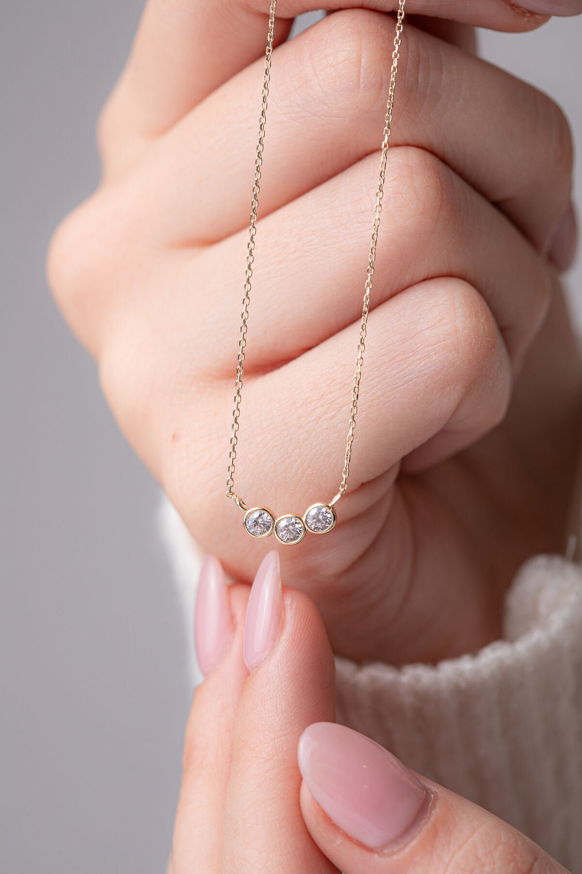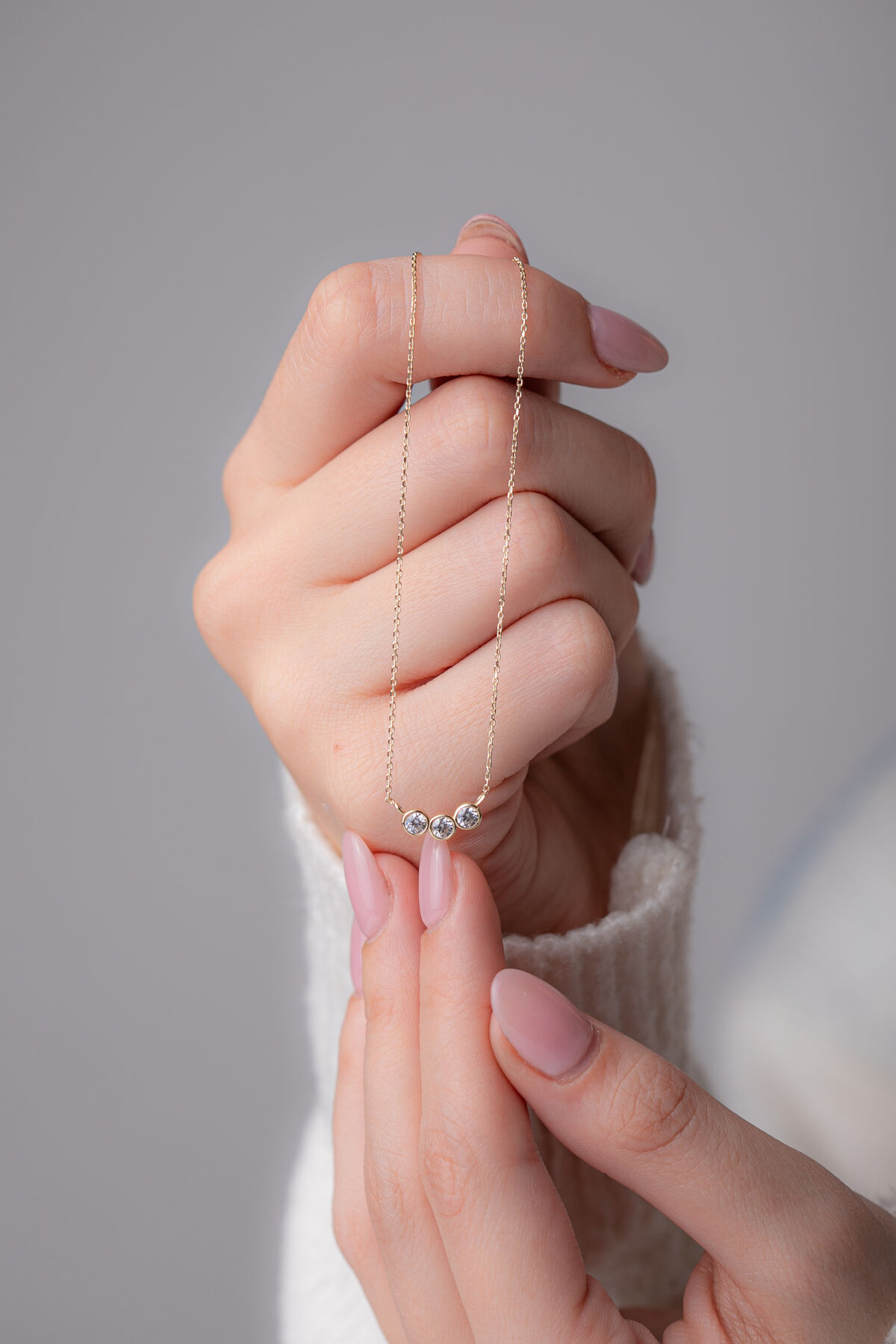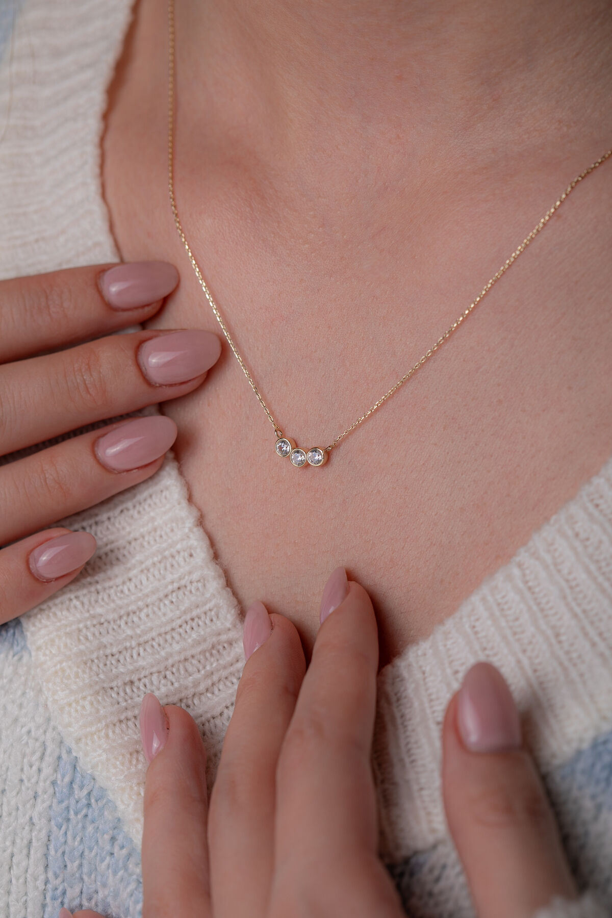 Kolyecik 14 Ayar Altın Üç Taş Kolye