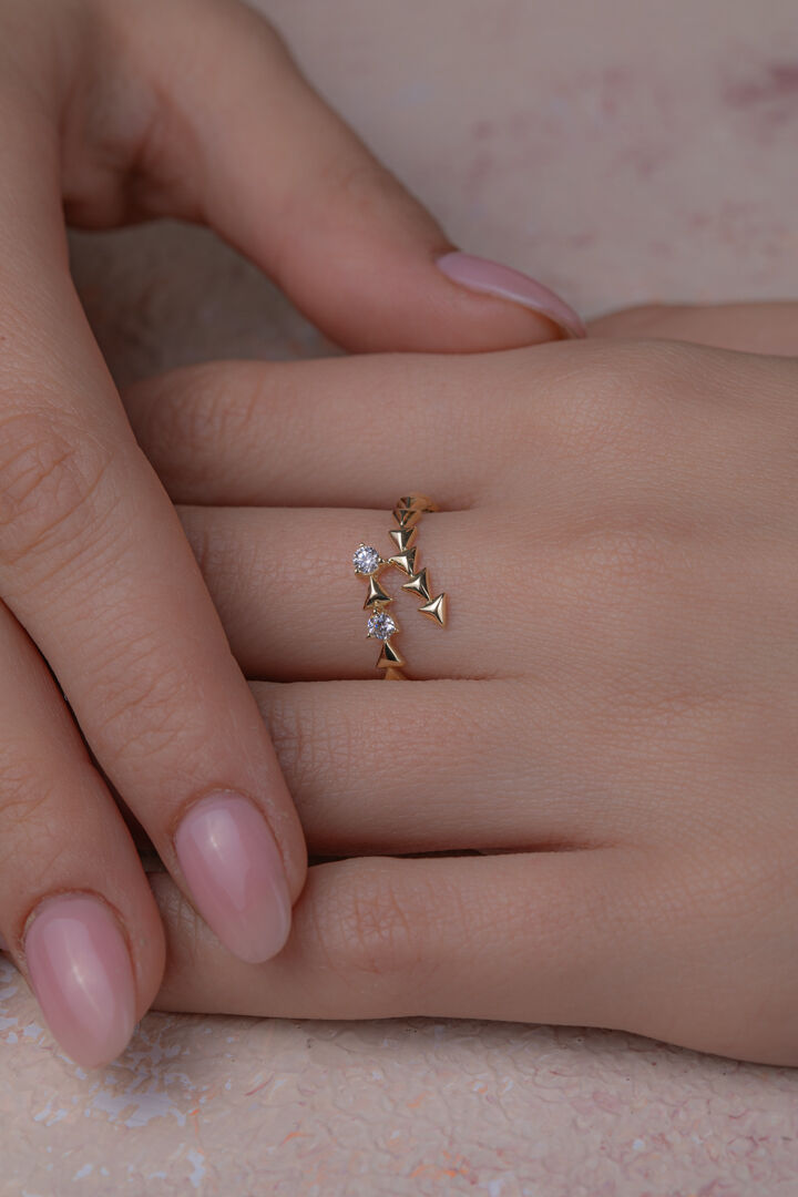 Kolyecik 14 Ayar Altın Üçgen Motifli Yüzük
