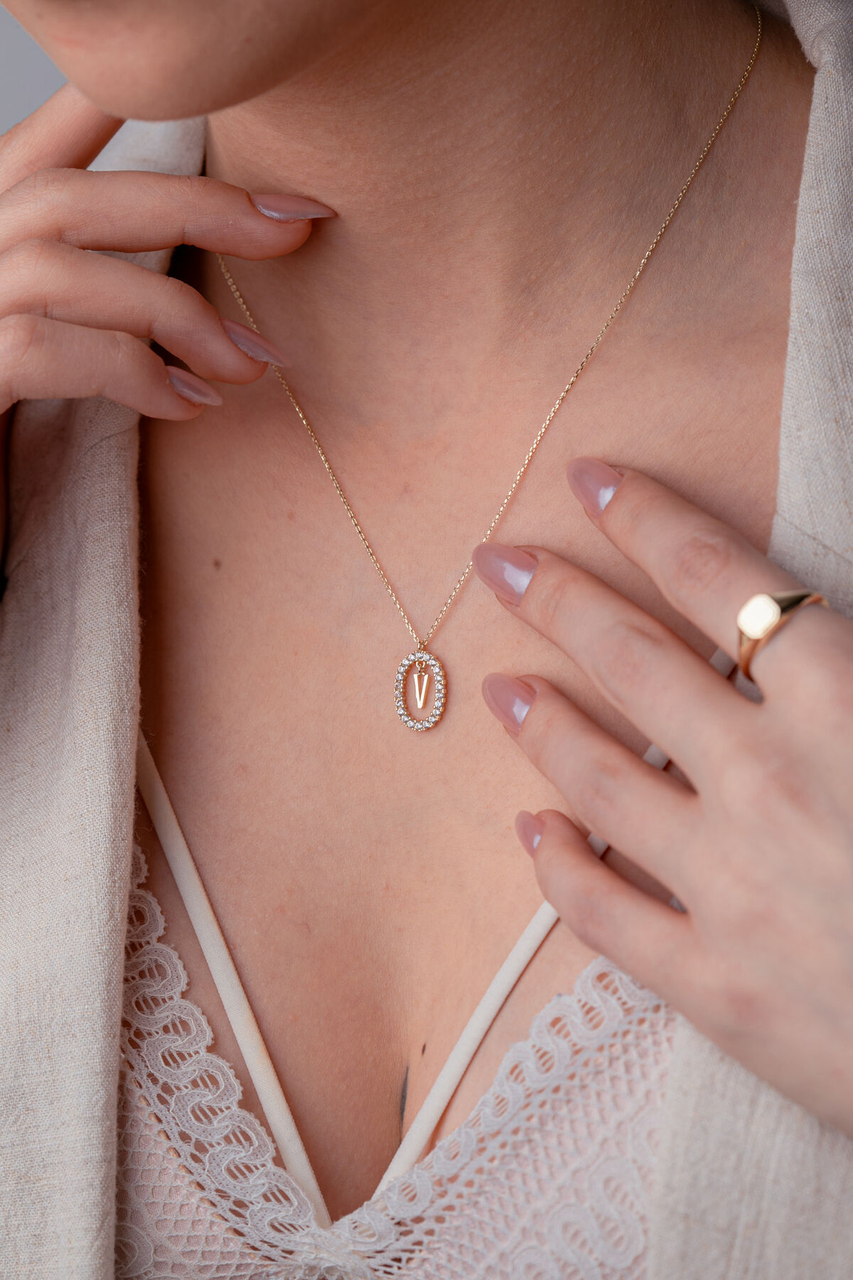 Kolyecik 14 Ayar Altın V Harf Kolye