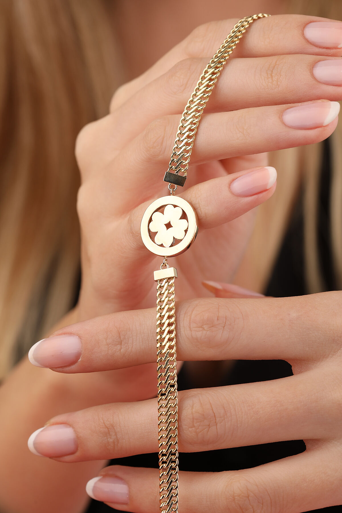Kolyecik 14 Ayar Altın Viyana Zincir Yonca Bileklik