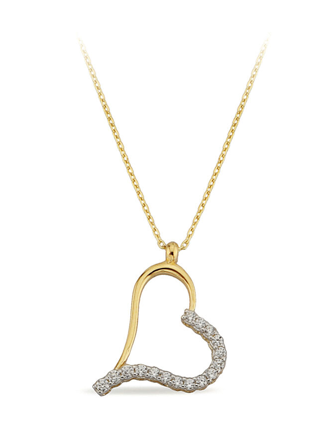 Kolyecik 14 Ayar Altın Yarı Taslı Kalp Kolye