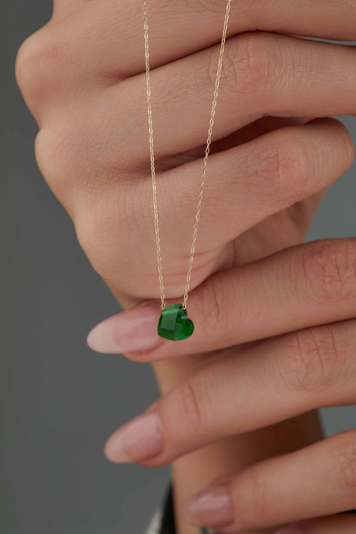 Kolyecik 14 Ayar Altın Yeşil Kalp Kolye