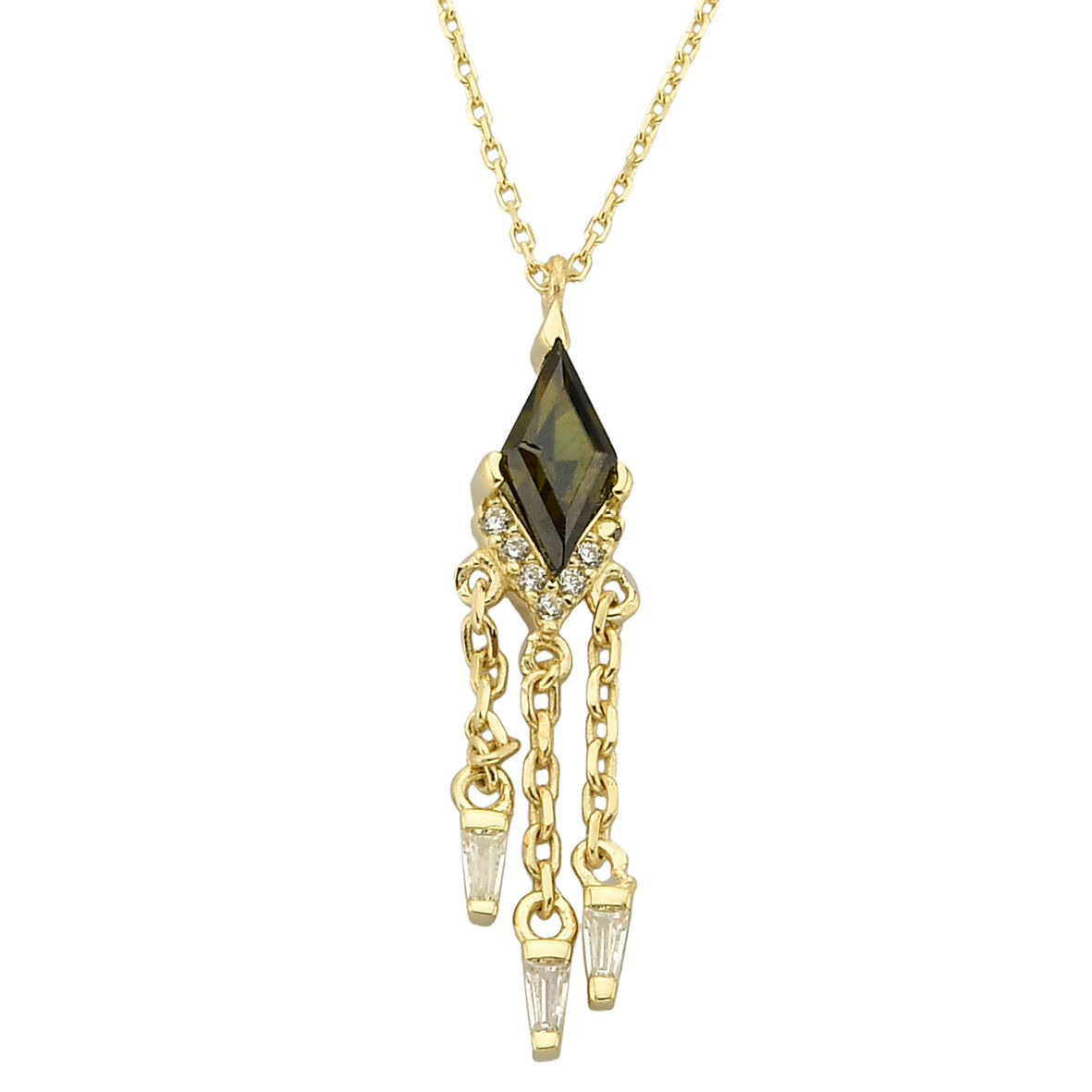 Kolyecik 14 Ayar Altın Yeşil Taş Zincir Sallantılı Kolye