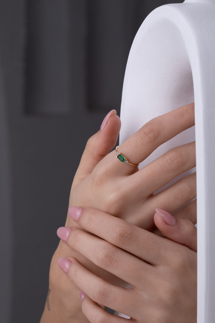 Kolyecik 14 Ayar Altın Yeşil Taşlı Baget Yüzük