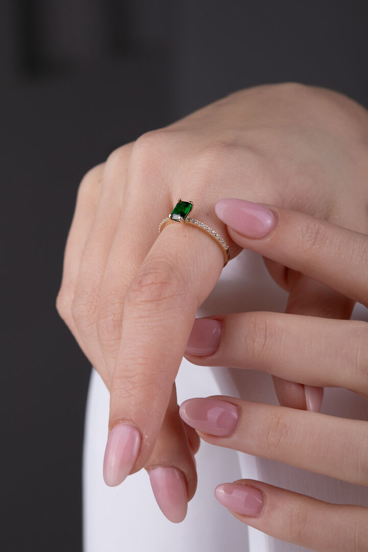 Kolyecik 14 Ayar Altın Yeşil Taşlı Baget Yüzük