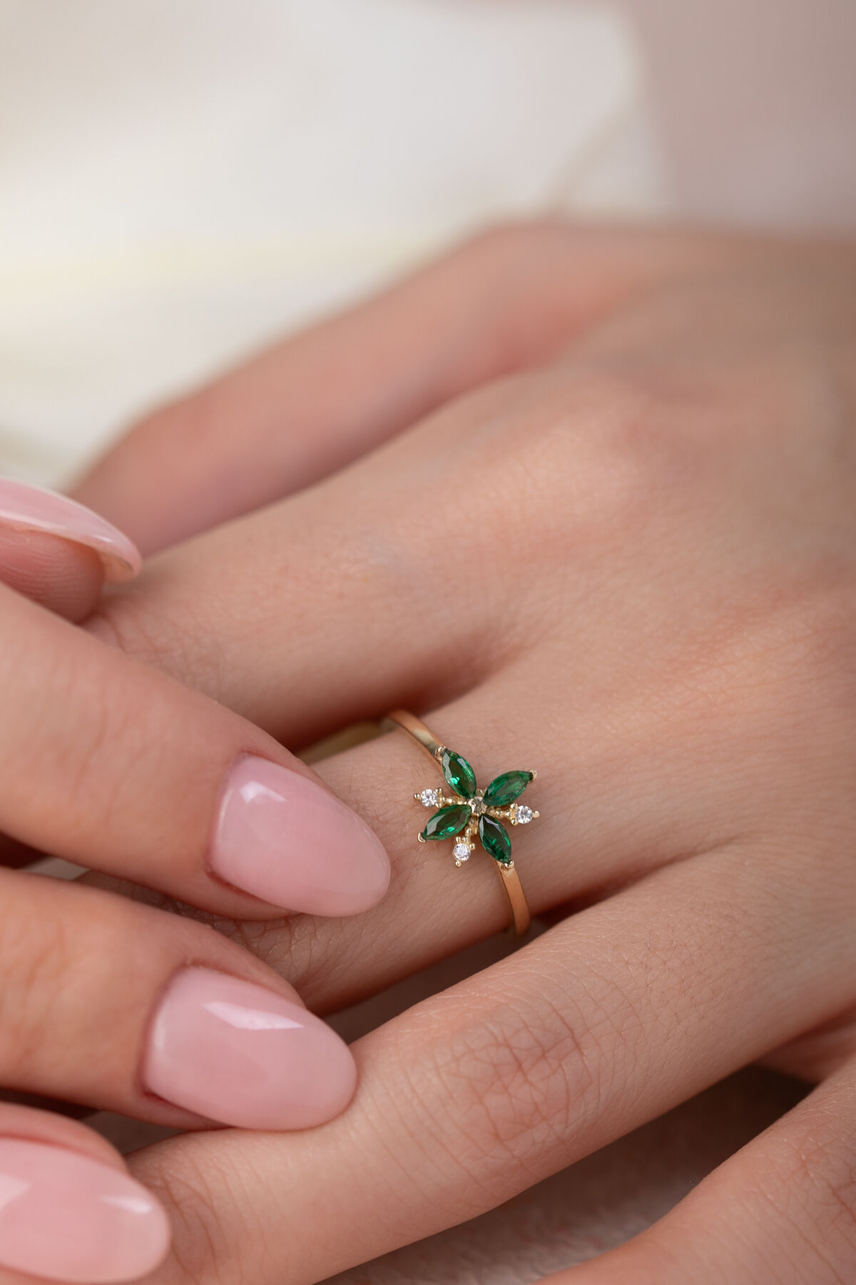 Kolyecik 14 Ayar Altın Yeşil Taşlı Yüzük