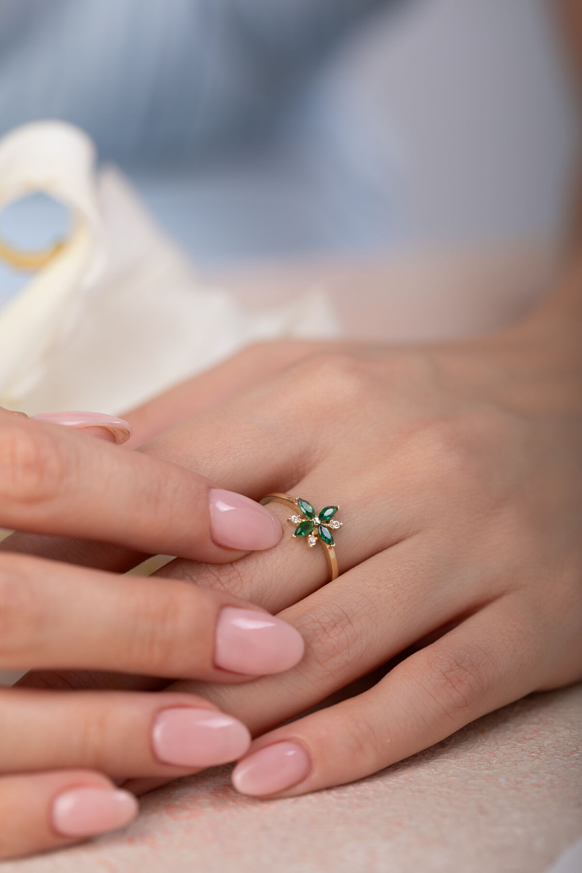 Doğanın huzurunu ve zarafetini yansıtan bu 14 ayar altın yeşil taşlı yüzük, sade şıklığıyla zamansız bir estetik sunar. 1,20 gramlık hafif yapısı parmakta zarif bir duruş sağlarken, yeşil taşın canlı tonu altının sıcak parıltısıyla mükemmel bir uyum yakalar. Yeşil taş yenilenmeyi, dengeyi ve içsel huzuru simgelerken, usta el işçiliğiyle işlenmiş detaylar modern bir ışıltı kazandırır. Minimal formu sayesinde günlük kullanımda zarif bir tamamlayıcı, özel günlerde ise lüks bir dokunuş olarak öne çıkar. Kaliteli yapısı ve ince işçiliği sayesinde uzun yıllar boyunca ilk günkü parlaklığını korur. Şık hediye kutusunda özenle sunulan bu yüzük, sevdiklerinize anlamlı bir armağan ya da kendinize doğadan ilham alan zarif bir ışıltı olarak mükemmel bir seçimdir.