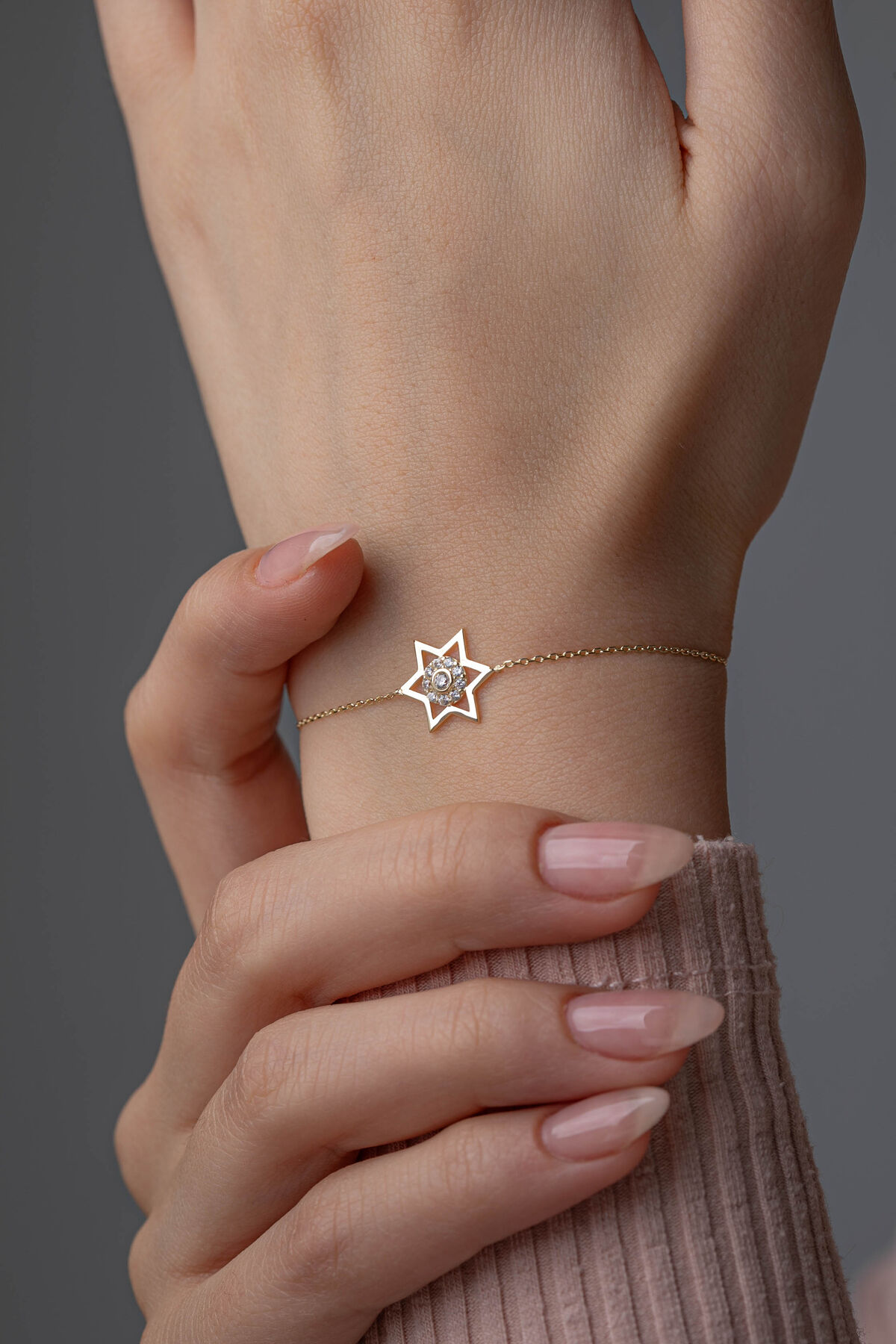 Kolyecik 14 Ayar Altın Yıldız Bileklik
