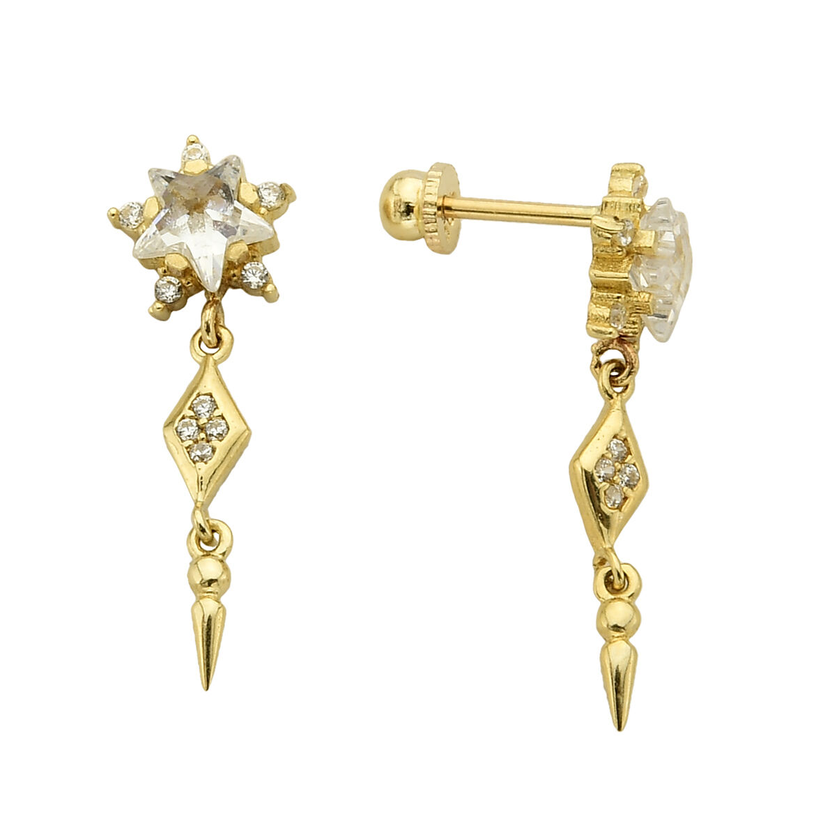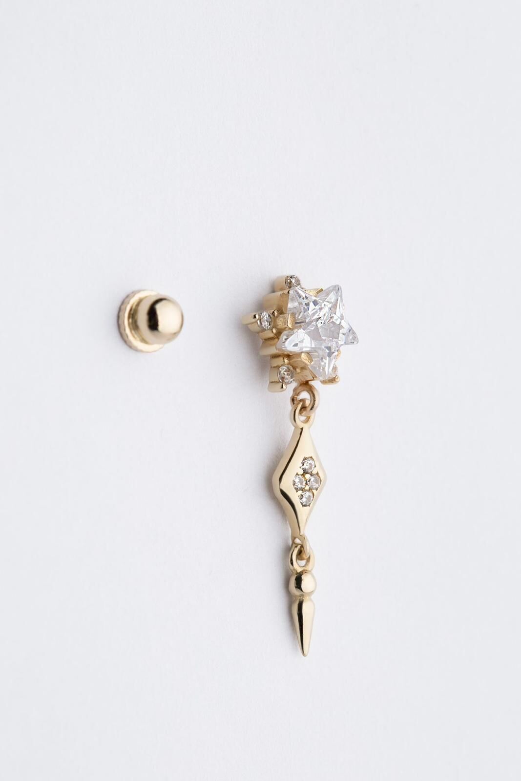 Kolyecik 14 Ayar Altın Yıldız Taş Sallantılı Küpe