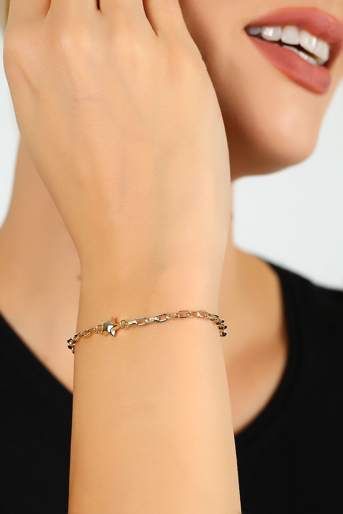 Kolyecik 14 Ayar Altın Yıldız Zincir Bileklik