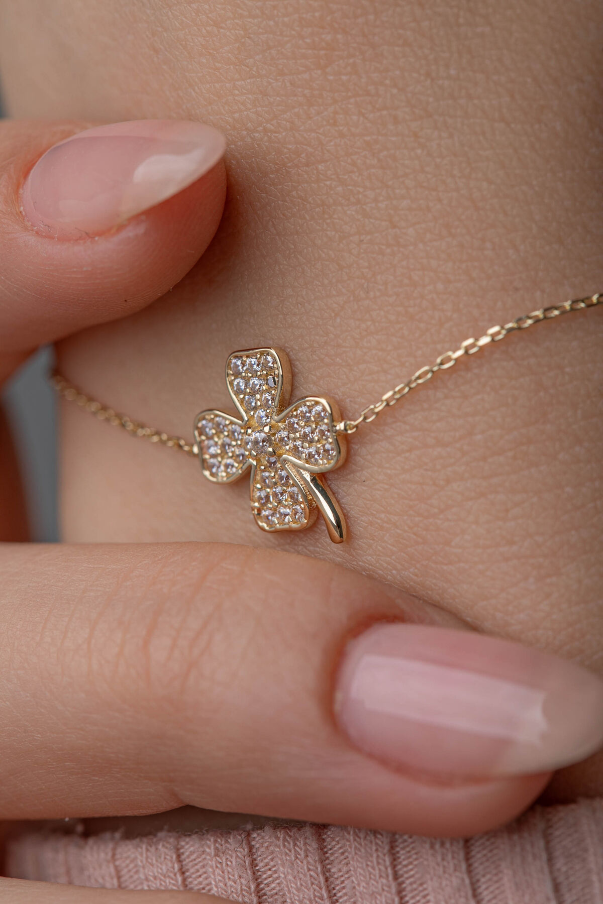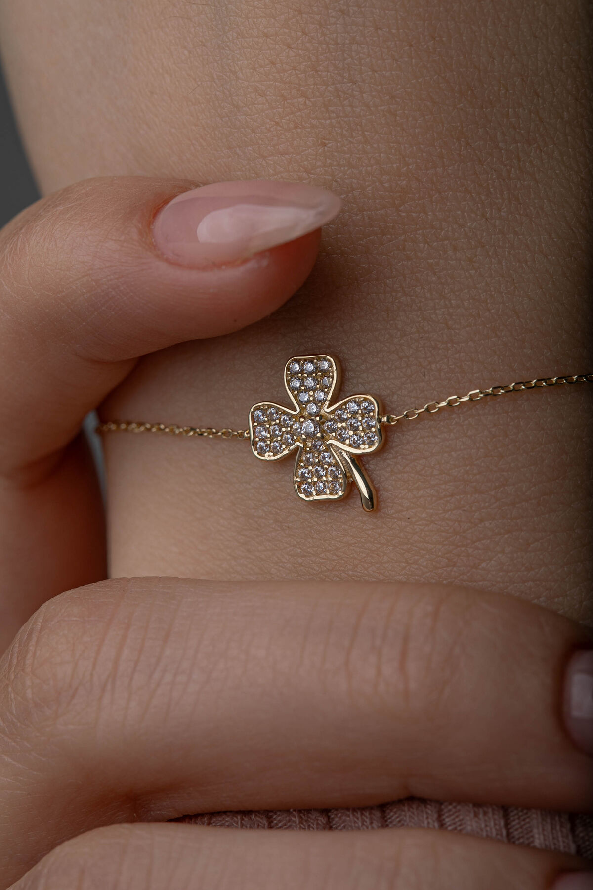 Kolyecik 14 Ayar Altın Yonca Bileklik