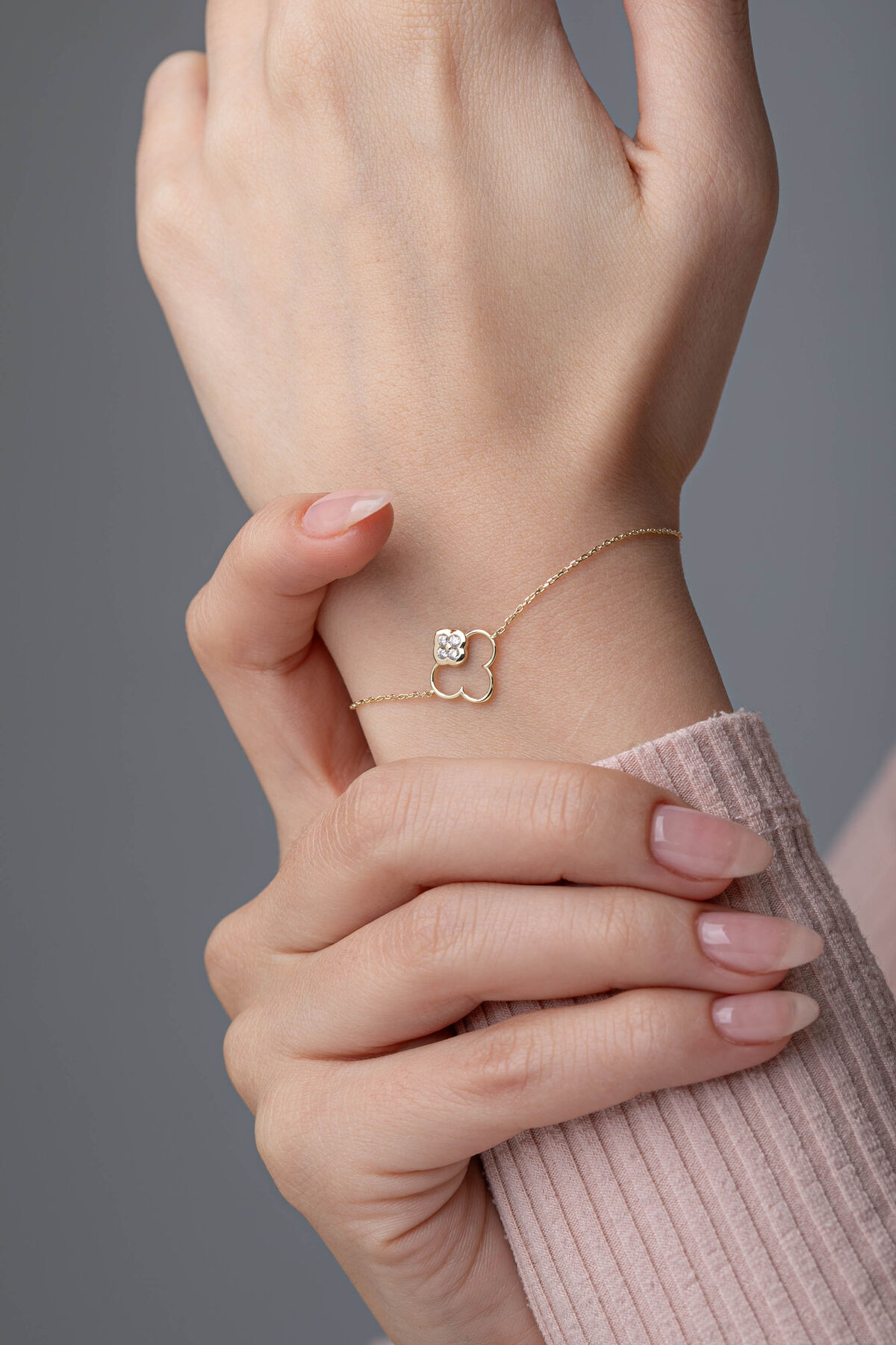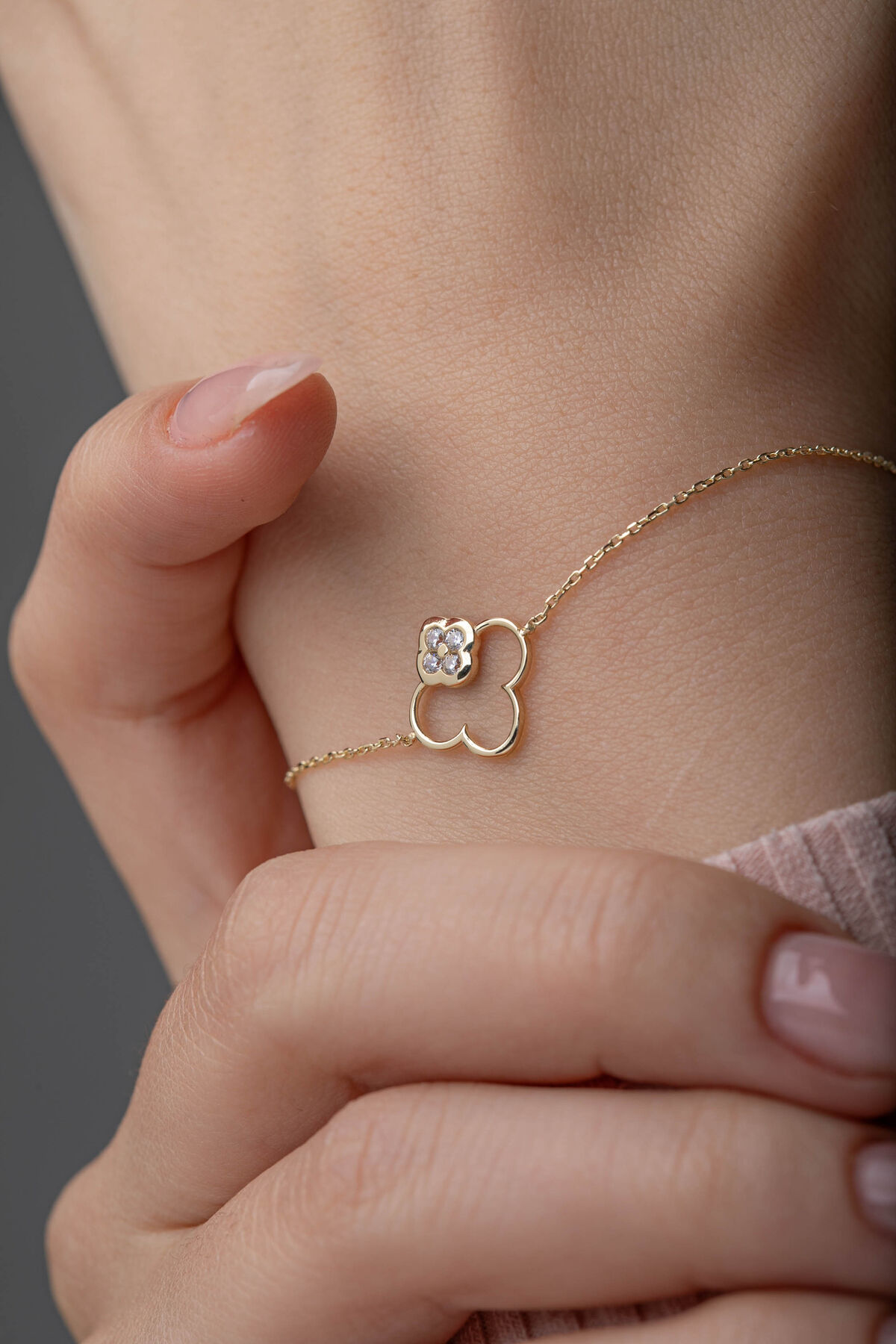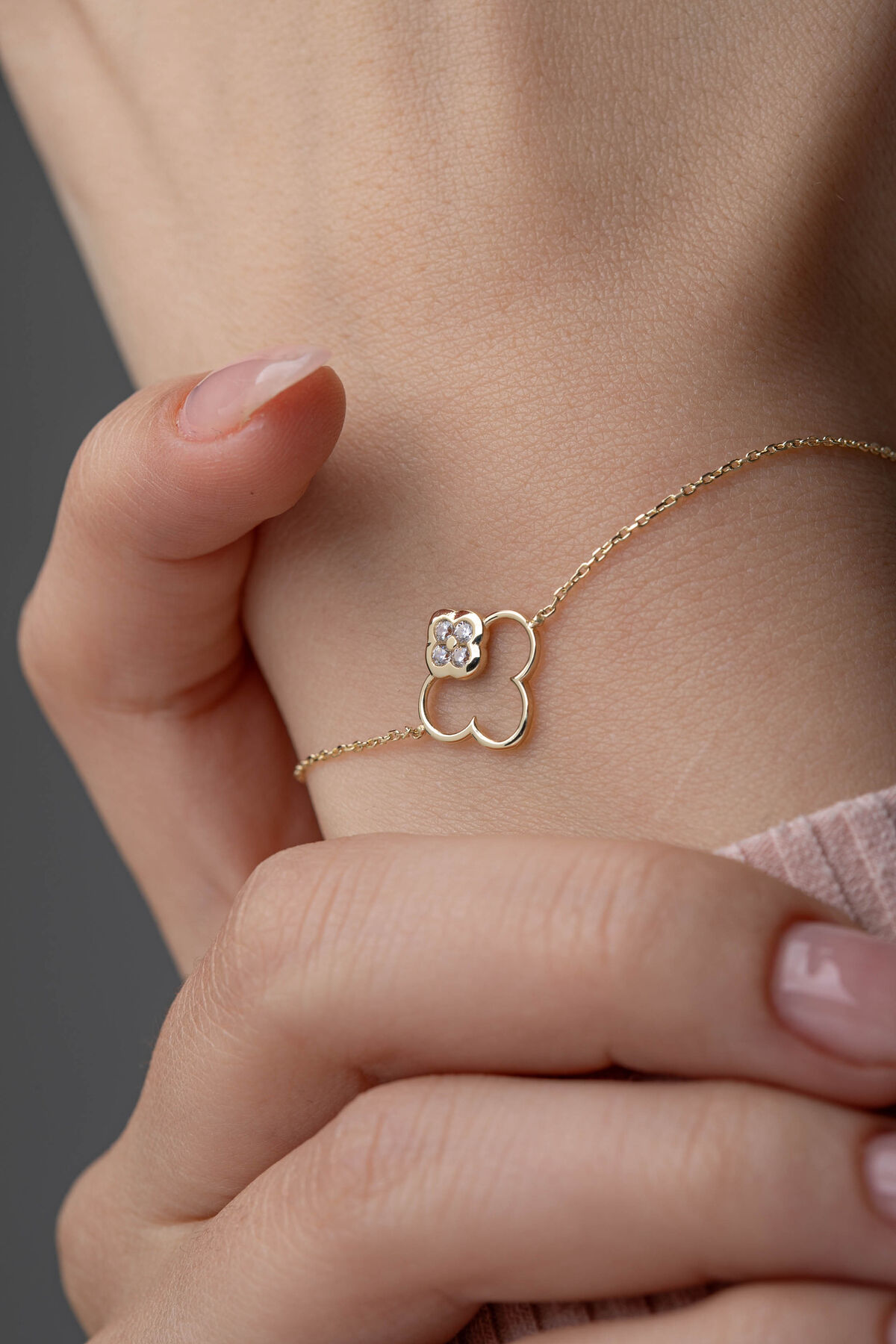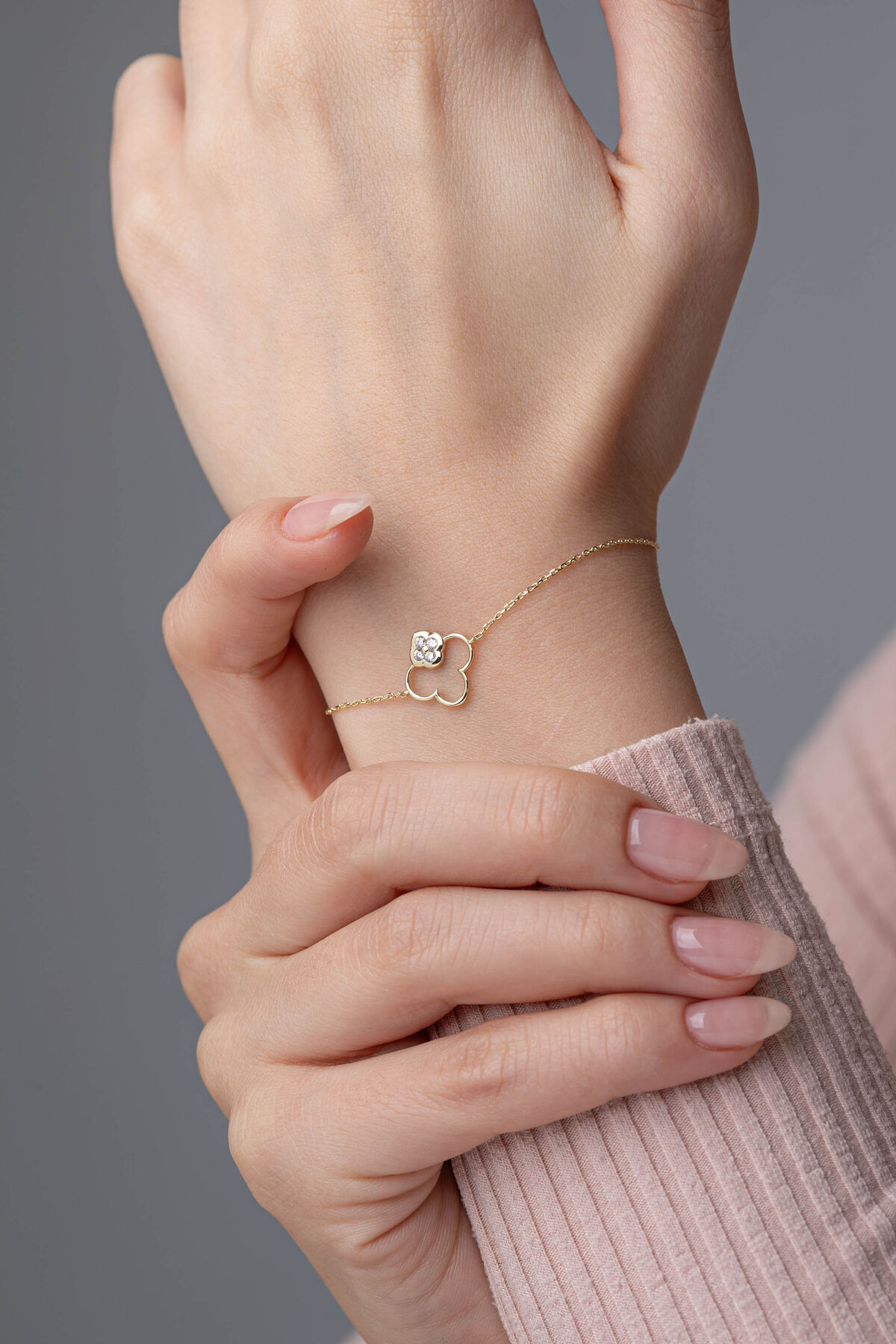 Kolyecik 14 Ayar Altın Yonca Bileklik