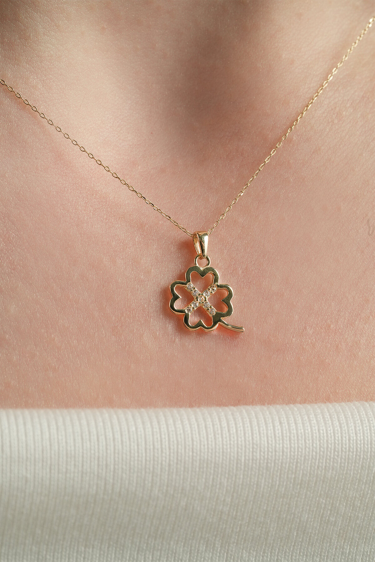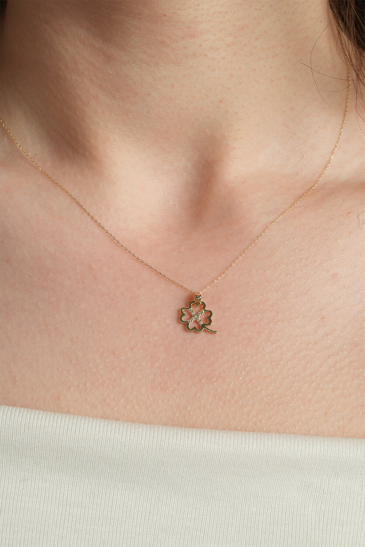 Kolyecik 14 Ayar Altın Yonca Kolye