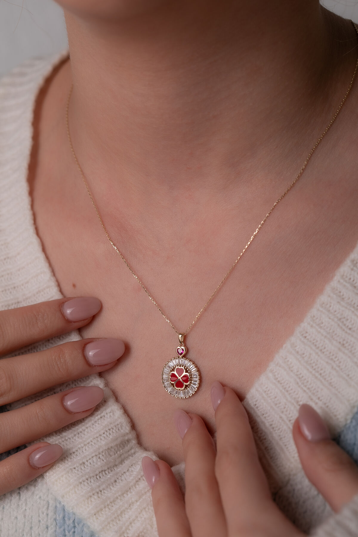 Şansın en bilinen sembollerinden biri olan yoncayı altının sıcak ışıltısıyla buluşturan 14 Ayar Altın Yonca Kolye, 3,70 gram ağırlığındaki zarif ve modern tasarımıyla stilinize hem anlamlı hem de göz alıcı bir dokunuş katar. Yoncanın zarif hatları, kolyeye doğal bir enerji ve şıklık kazandırarak günlük kombinlerden özel davetlere kadar her ortama uyum sağlayan sofistike bir görünüm sunar. Bu özel tasarım tamamen el yapımı olduğundan üretimin doğal yapısı gereği ağırlıkta %5 + / - değişkenlik gösterebilir. Bu küçük farklılıklar her bir kolyeyi benzersiz kılar ve el işçiliğinin değerini daha da ön plana çıkarır. Ustalıkla işlenen 14 ayar altın yüzey, yonca figürünün tüm detaylarını belirginleştirerek uzun yıllar boyunca parlaklığını korur. Her sipariş özenle hazırlanır ve ürünün değerini kanıtlayan ürüne özel sertifika mevcuttur. Tüm hazırlık süreci tamamlandıktan sonra kolyeniz 2 günde kargoya teslim edilir, böylece bu anlamlı ve zarif tasarıma kısa sürede sahip olabilirsiniz. Şansın sembolik gücünü zarif altın işçiliğiyle bir araya getiren bu yonca kolye, hem kendiniz hem de sevdikleriniz için özel bir hediye alternatifi sunar.