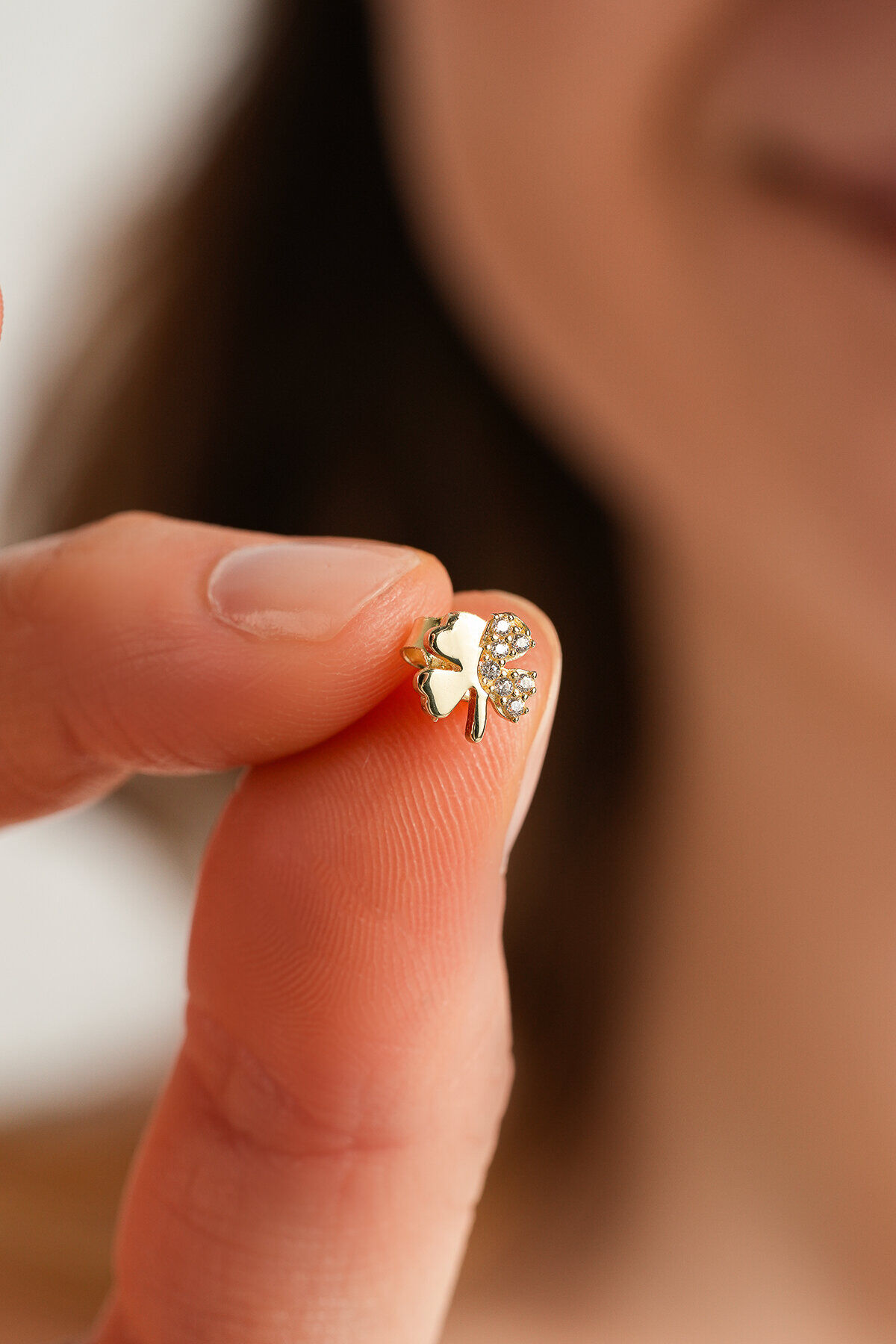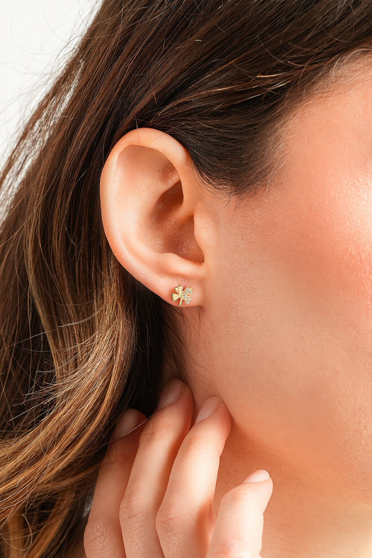 Kolyecik 14 Ayar Altın Yonca küpe