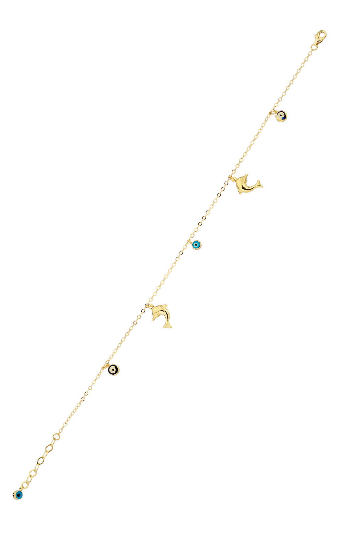 Kolyecik 14 Ayar Altın Yunus Balığı ve Nazar Boncuklu Halhal