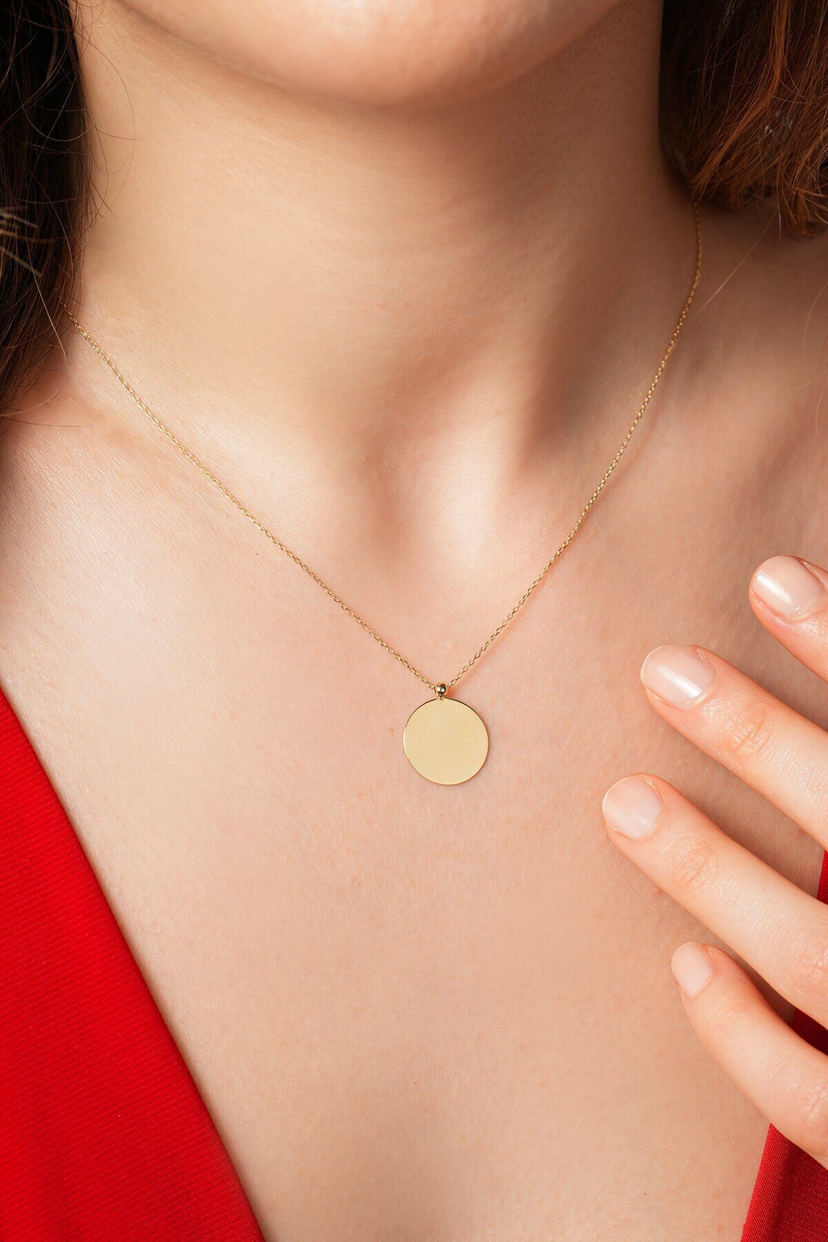 Kolyecik 14 Ayar Altın Yuvarlak Plaka Kolye