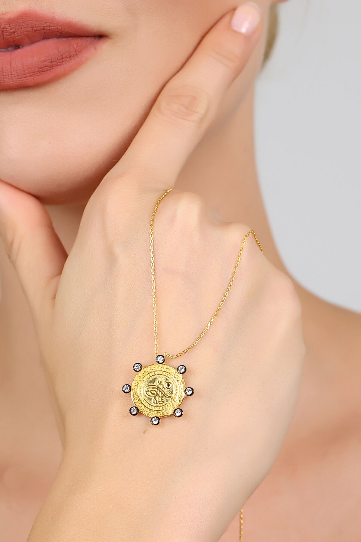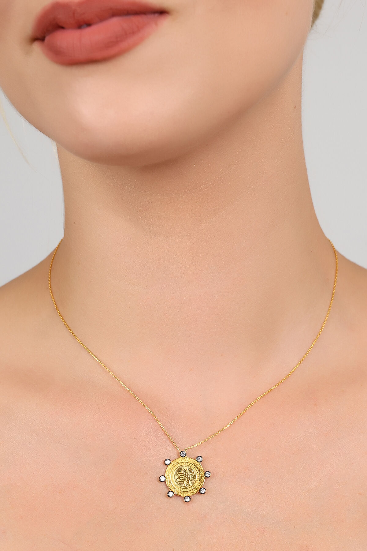 Kolyecik 14 Ayar Altın Zarif Taşlı Tuğra Kolye