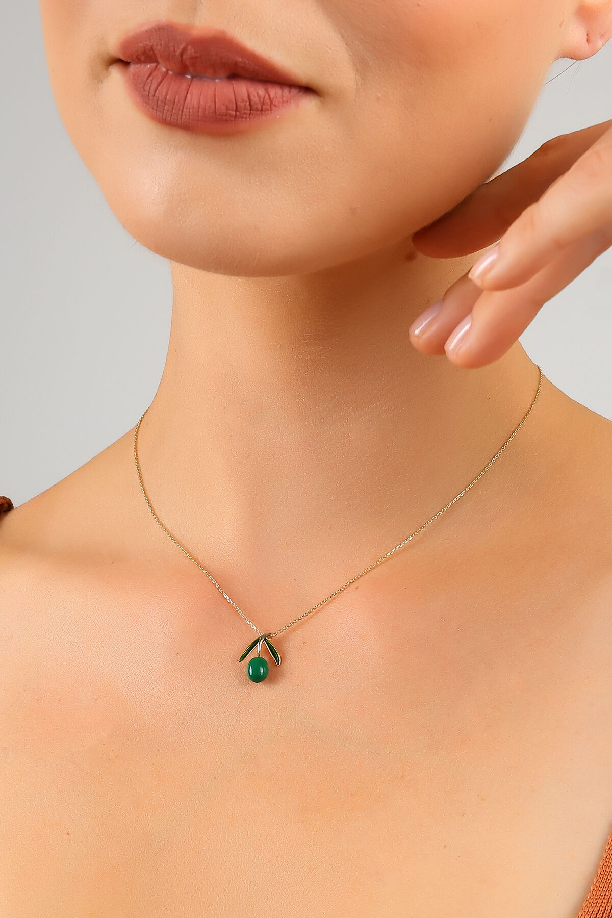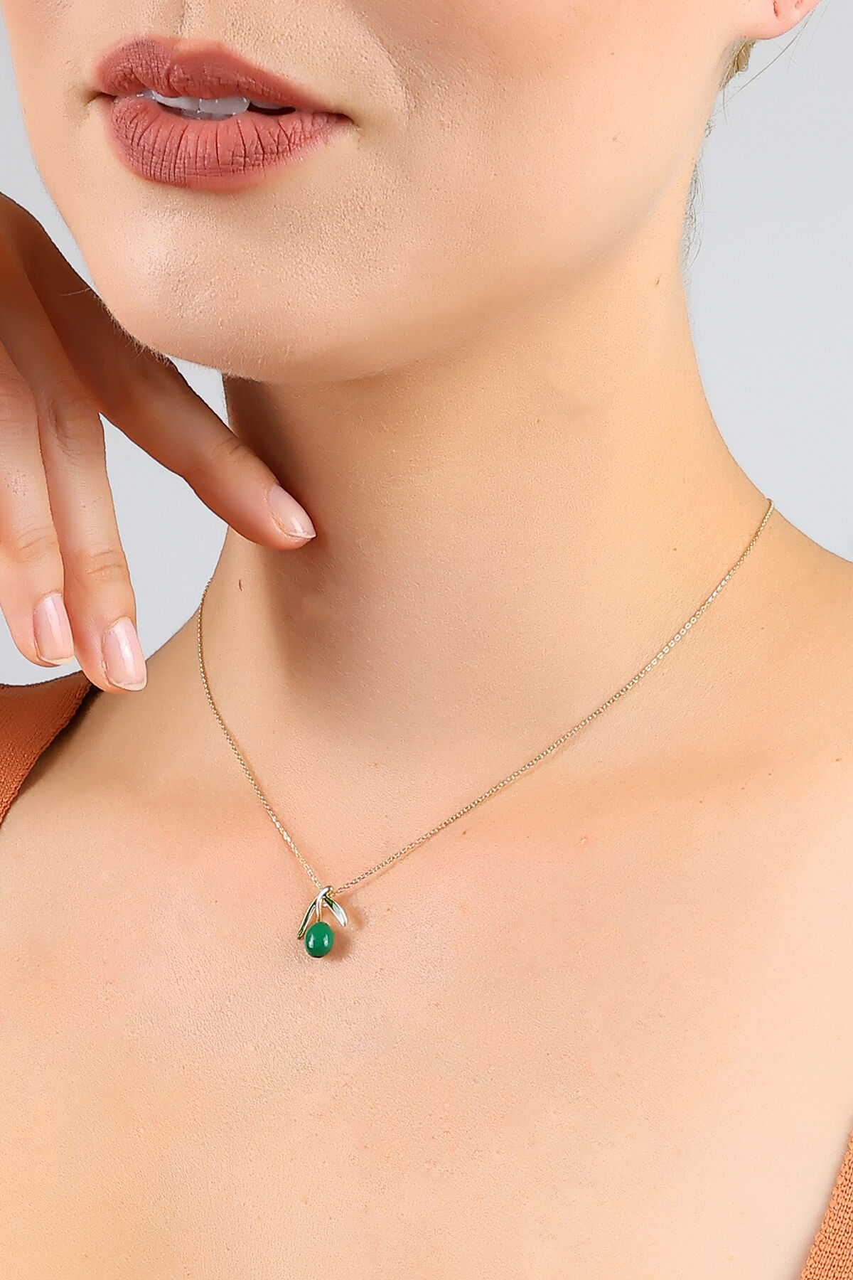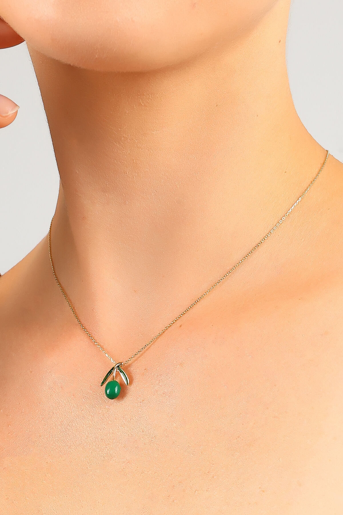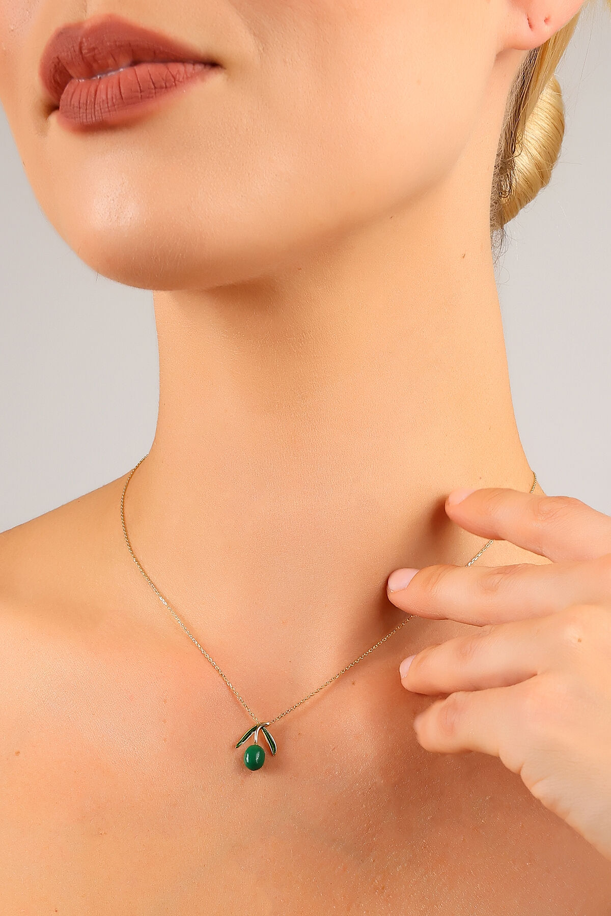 Kolyecik 14 Ayar Altın Zarif Yeşil Zeytin Kolye