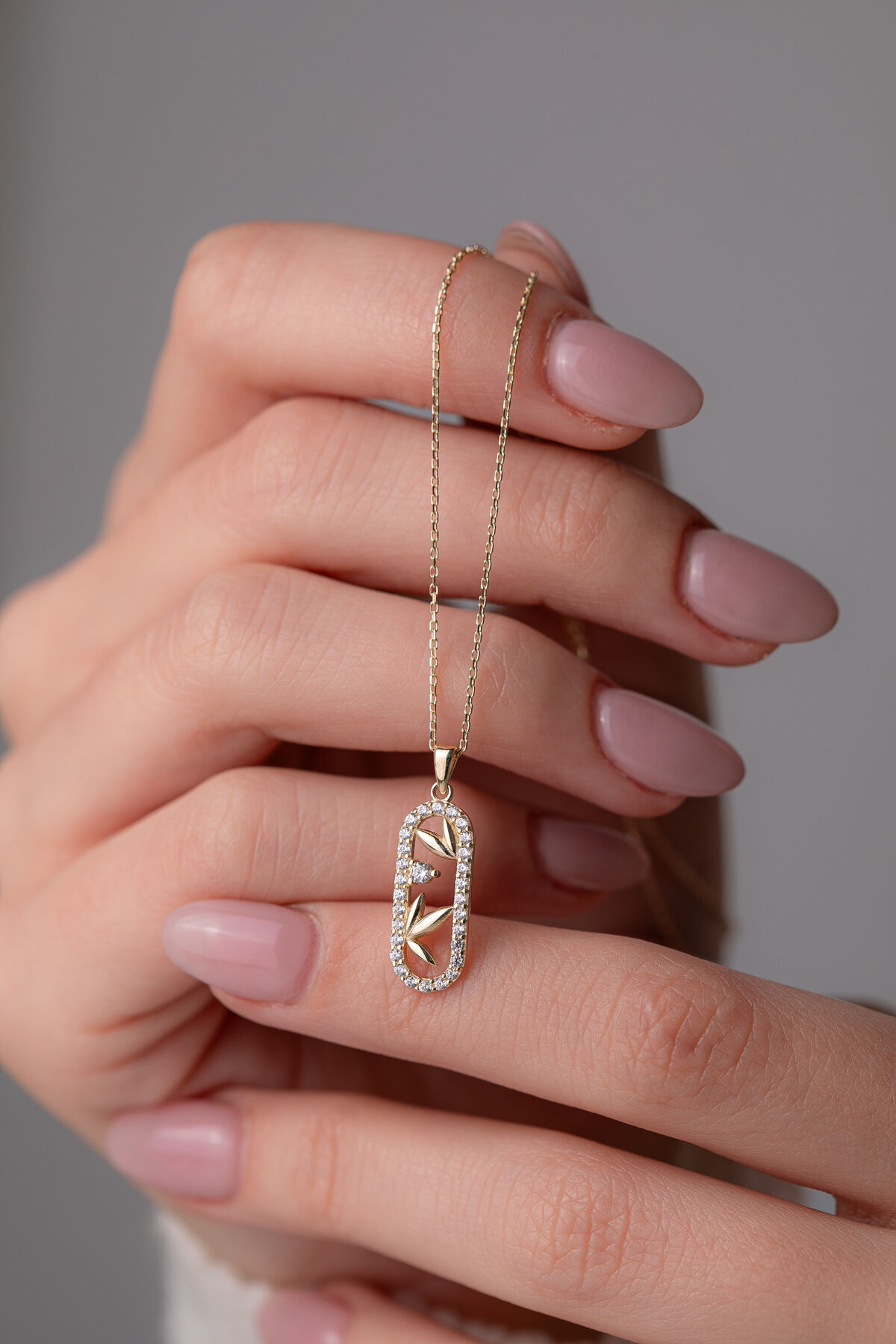 Barışı, umudu ve yaşamın bereketini temsil eden zeytin dalını zarif bir tasarımla sunan 14 Ayar Altın Zeytin Dalı Kolye, 1,80 gram ağırlığındaki şık ve anlamlı görünümüyle stilinize doğal bir zarafet katar. İnce işçilikle şekillendirilen zeytin dalı motifi, kolyeye hem modern hem de huzur dolu bir duruş kazandırarak günlük kullanımda da özel davetlerde de estetik bir tamamlayıcı olur. Bu özel model tamamen el yapımı olarak üretildiğinden, doğal üretim süreci gereği ağırlıkta %5 + / - değişkenlik gösterebilir. Bu benzersiz farklılıklar her bir kolyeyi özel kılar ve el işçiliğinin değerini daha da anlamlı hâle getirir. 14 ayar altının parlak yüzeyi, zeytin dalının zarif kıvrımlarını ön plana çıkararak uzun yıllar boyunca canlılığını korur. Her sipariş büyük bir özenle hazırlanır ve ürünün değerini belgeleyen ürüne özel sertifika mevcuttur. Hazırlık sürecinin ardından kolyeniz 2 günde kargoya teslim edilir, böylece bu zarif ve huzur dolu tasarıma kısa sürede sahip olabilirsiniz. Zeytin dalının barış ve umut dolu anlamını boynunuzda taşımak isteyenler için mükemmel bir seçim olan bu kolye hem kendiniz hem de sevdikleriniz için özel, anlamlı ve şık bir hediye alternatifidir.