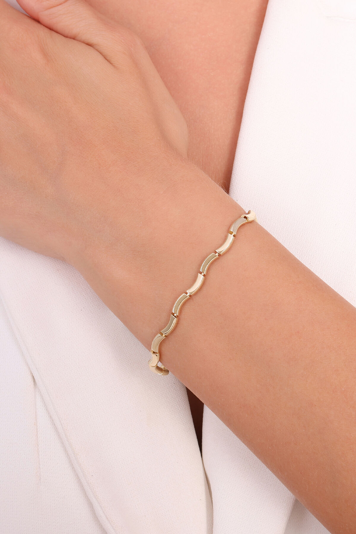 Zarif bir ışıltı ve kusursuz bir denge… Bu 14 ayar altın zincir bileklik, incelikle tasarlanmış detaylarıyla modern şıklığın en sofistike hâlini yansıtır. 4,67 gramlık ideal ağırlığı sayesinde bileğinizde konforlu bir kullanım sunar, altının sıcak parıltısı ise her ışıkta asil bir ışıltıyla fark yaratır. Usta işçiliğin özeniyle şekillenen zincir halkaları, minimal tasarımına rağmen güçlü bir zarafet duygusu taşır. Günlük kombinlerde sade bir tamamlayıcı olarak şıklık sunarken, özel anlarda göz alıcı bir detay hâline gelir. Kaliteli el işçiliğiyle üretilen bu bileklik, zamansız tasarımı sayesinde yıllar geçse de değerini ve ışıltısını korur. Şık hediye kutusunda özenle sunulan bu özel parça, hem sevdiklerinize anlamlı bir armağan hem de kendinize zarafeti taşıyan değerli bir seçimdir.