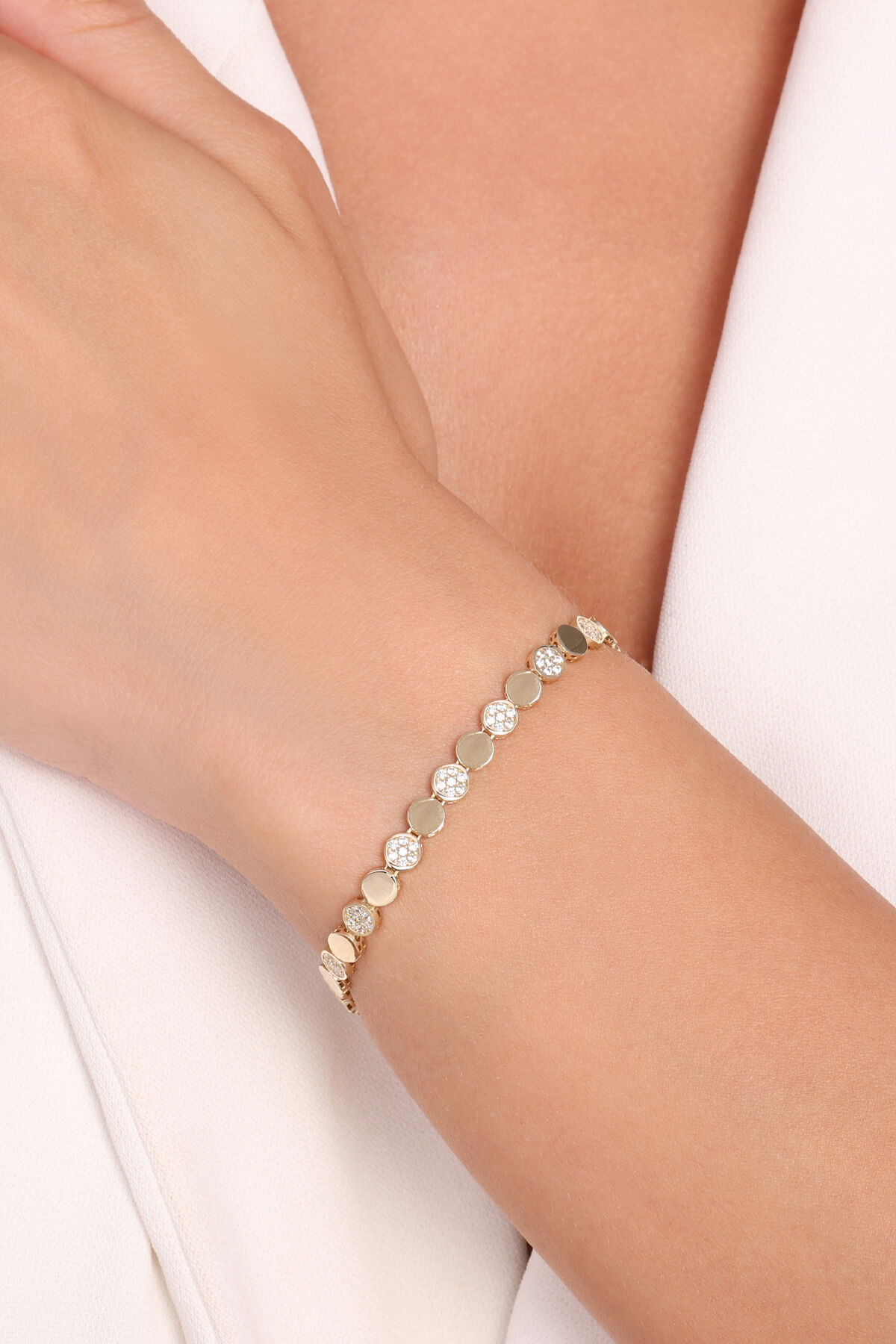 Şıklığın en sade hâlini zarafetle sunan bu 14 ayar altın zincir bileklik, zamansız tasarımıyla her stile uyum sağlayan özel bir parçadır. 5,45 gramlık ideal ağırlığıyla bileğinizde dengeli bir duruş sergilerken, altının sıcak ışıltısı her ışıkta büyüleyici bir parıltı yaratır. İncelikle işlenmiş zincir halkaları, el işçiliğinin ustalığını yansıtır ve modern sadeliğiyle dikkat çeker. Günlük yaşamda zarif bir dokunuş, özel anlarda ise asil bir tamamlayıcı olarak stilinizi mükemmel şekilde tamamlar. Kaliteli yapısı sayesinde yıllar boyunca parlaklığını koruyan bu bileklik, hem estetik hem de kalıcı bir değerin sembolüdür. Göz alıcı ama abartısız duruşuyla, zarif bir lüksü temsil eder. Şık hediye kutusunda özenle sunulan bu tasarım, sevdiklerinize anlam dolu bir armağan ya da kendinize zarif bir ödül niteliğindedir.