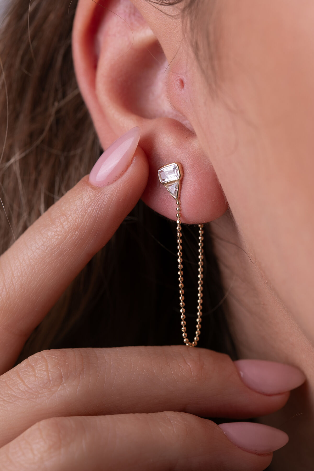 Kolyecik 14 Ayar Altın Zincir Sallantılı Küpe