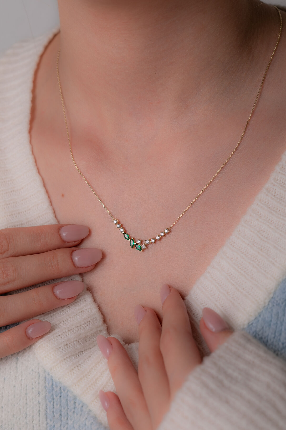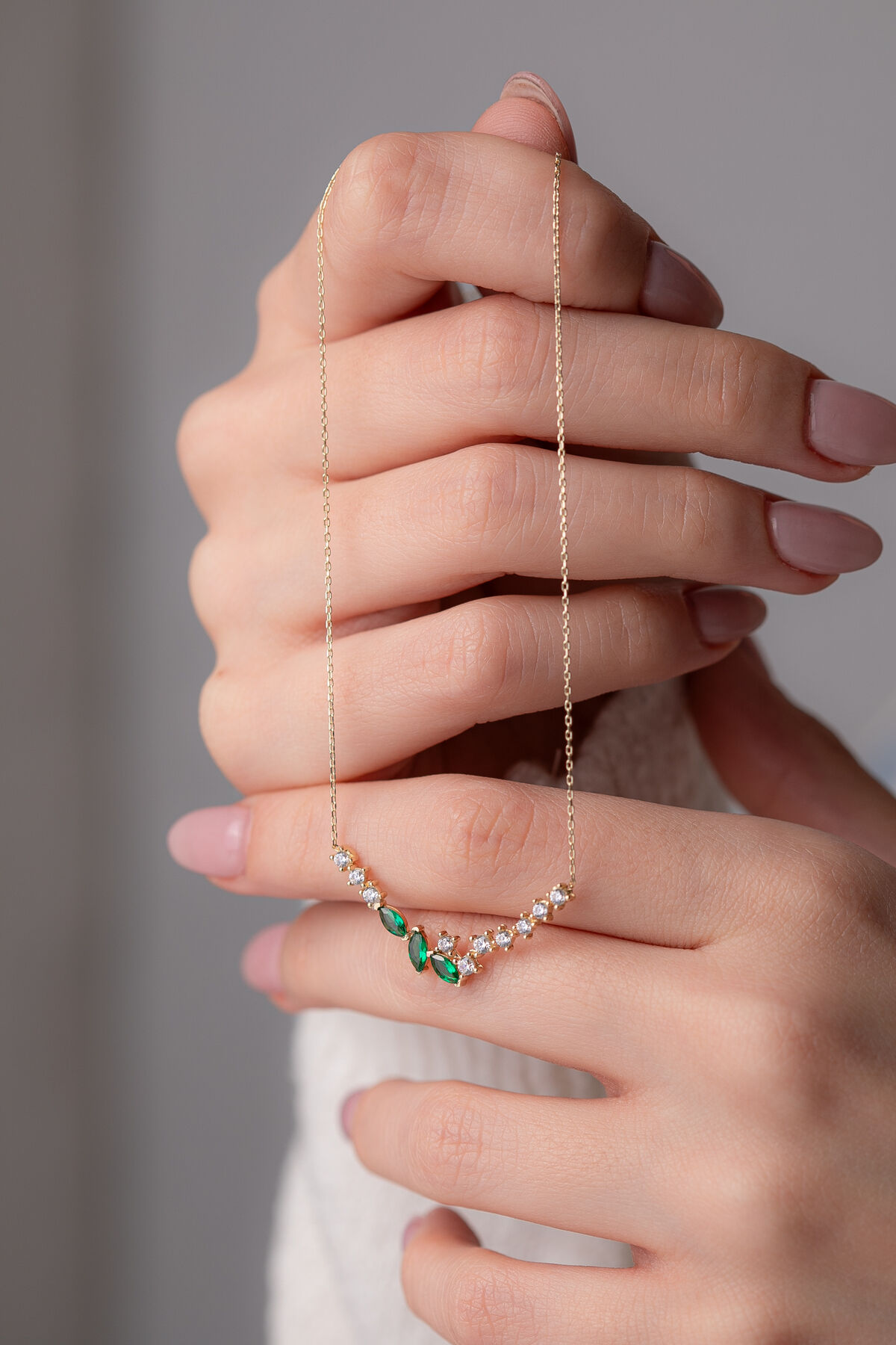 Doğal güzelliği ve değerli taşın etkileyici ışıltısıyla bu zümrüt taşlı kolye, hem kendiniz hem de sevdikleriniz için özel bir hediye seçeneğidir.