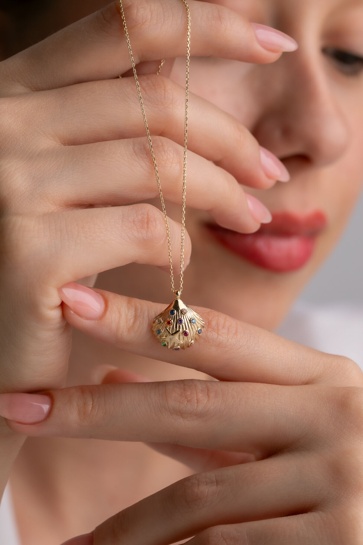 Kolyecik 14 Ayar Altnn Deniz Kabugu Kolye
