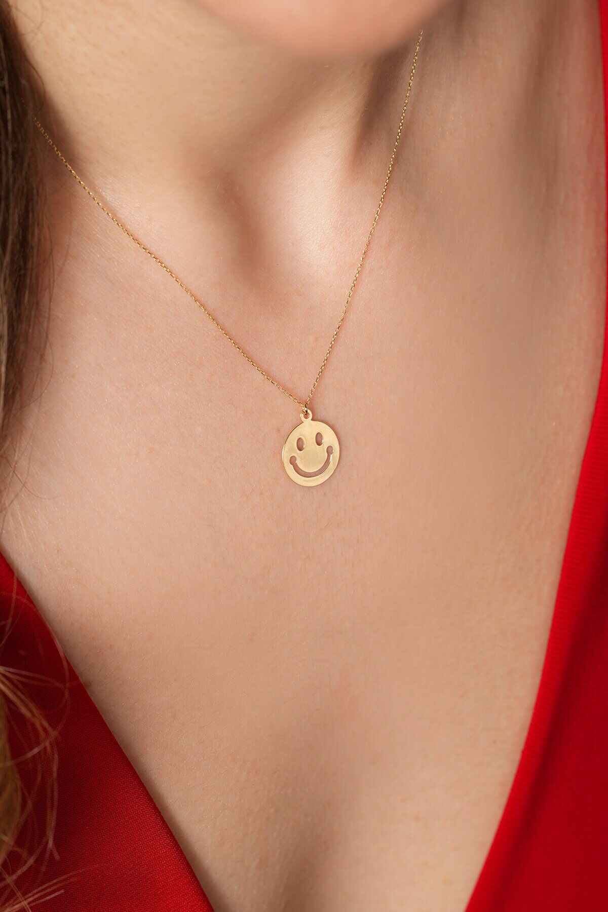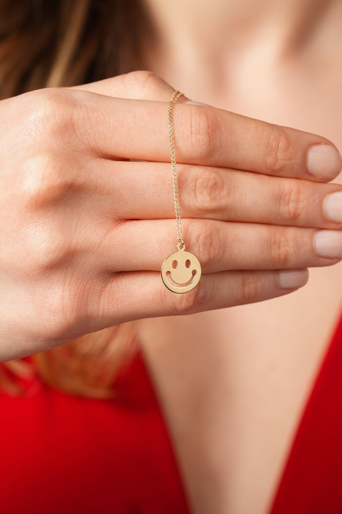 Kolyecik 14 Ayar Gülen Yüz Kolye