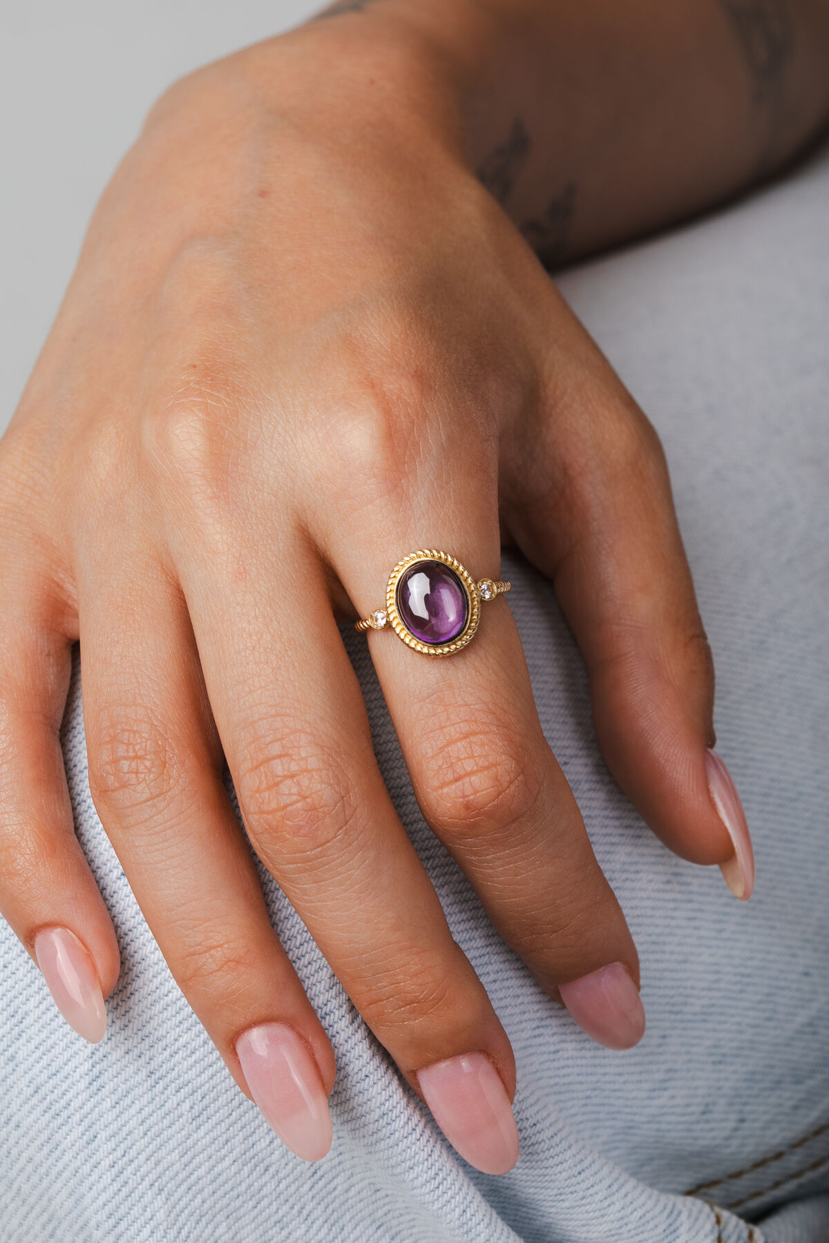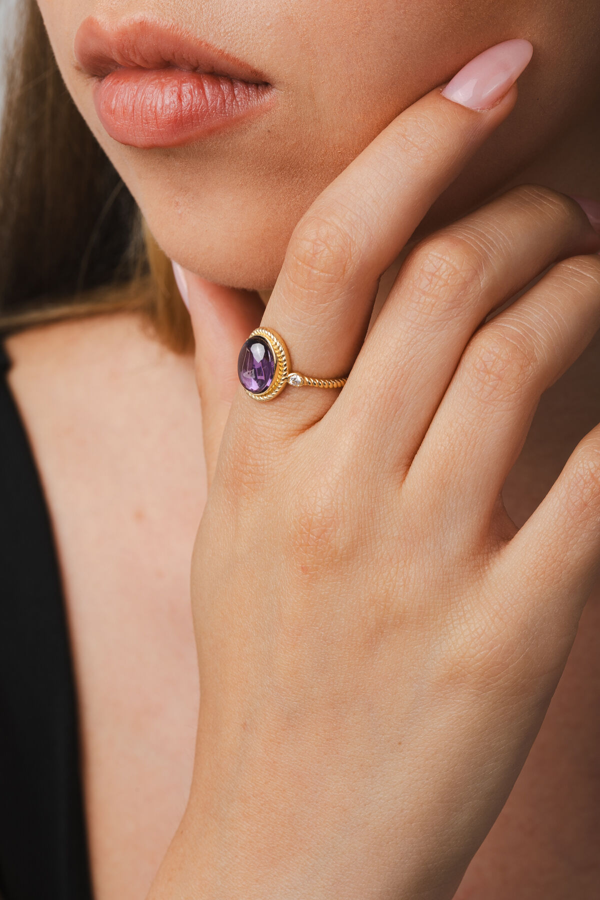 Kolyecik 14 Ayar Mor Taşlı Altın Yüzük