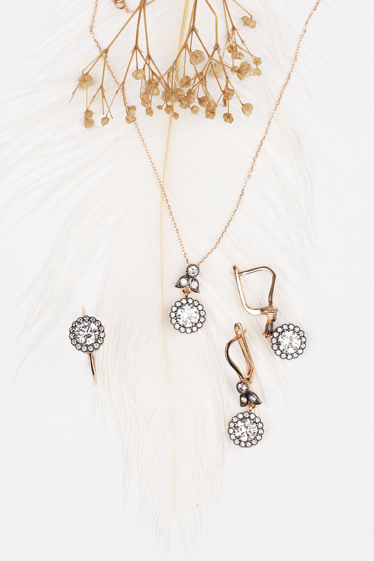 Kolyecik'in altın eskitme montürlü üçlü takımı ile tarzınızı ve şıklığınızı ön plana çıkarın. Bu takım, her durumda size zarif bir görünüm kazandırmak için tasarlanmıştır.