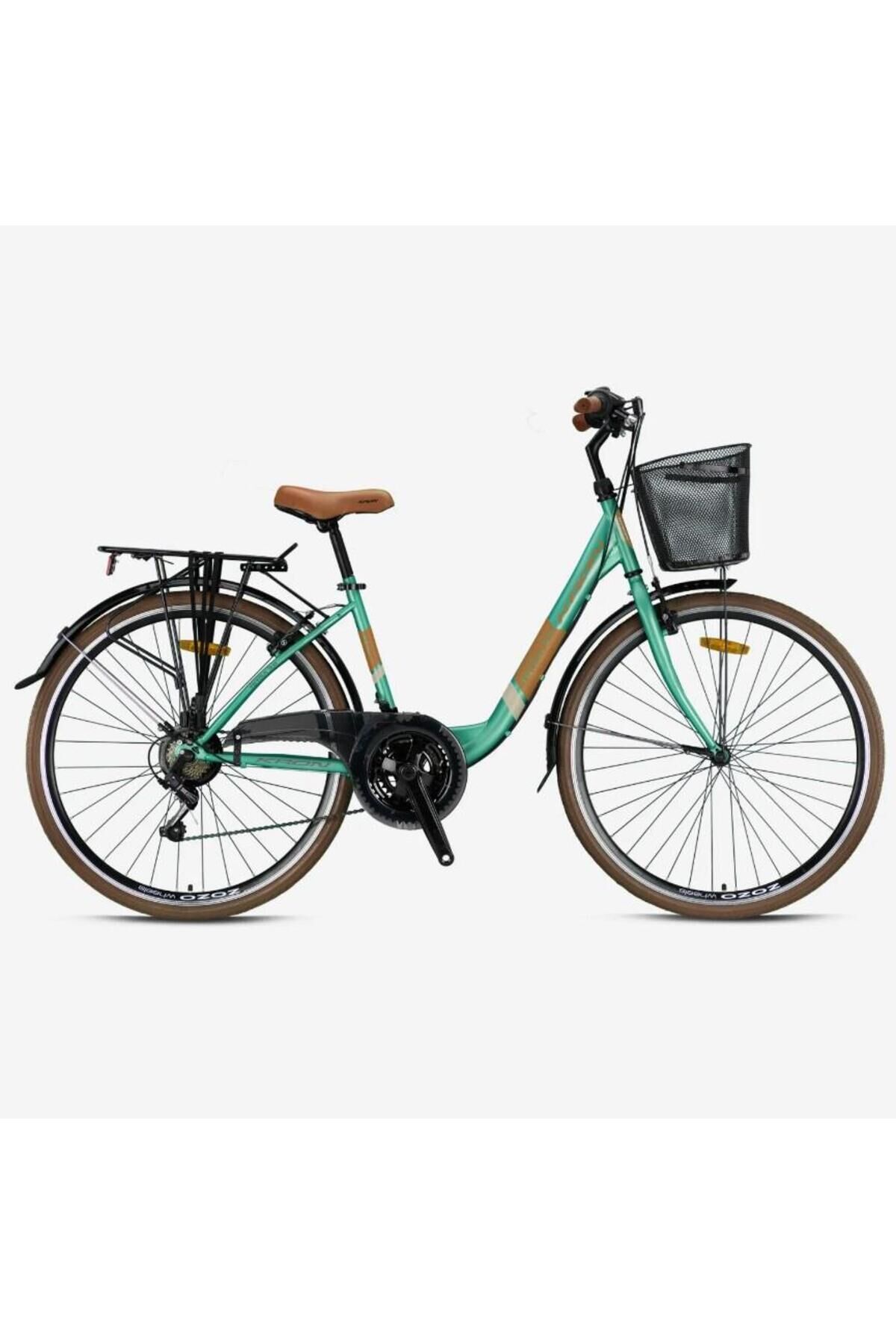 Kron Tetra 3.0 26" Jant Sepetli Şehir Bisikleti 15' Kadro 21 Vites V-fren Mint Yeşili Kahverengi