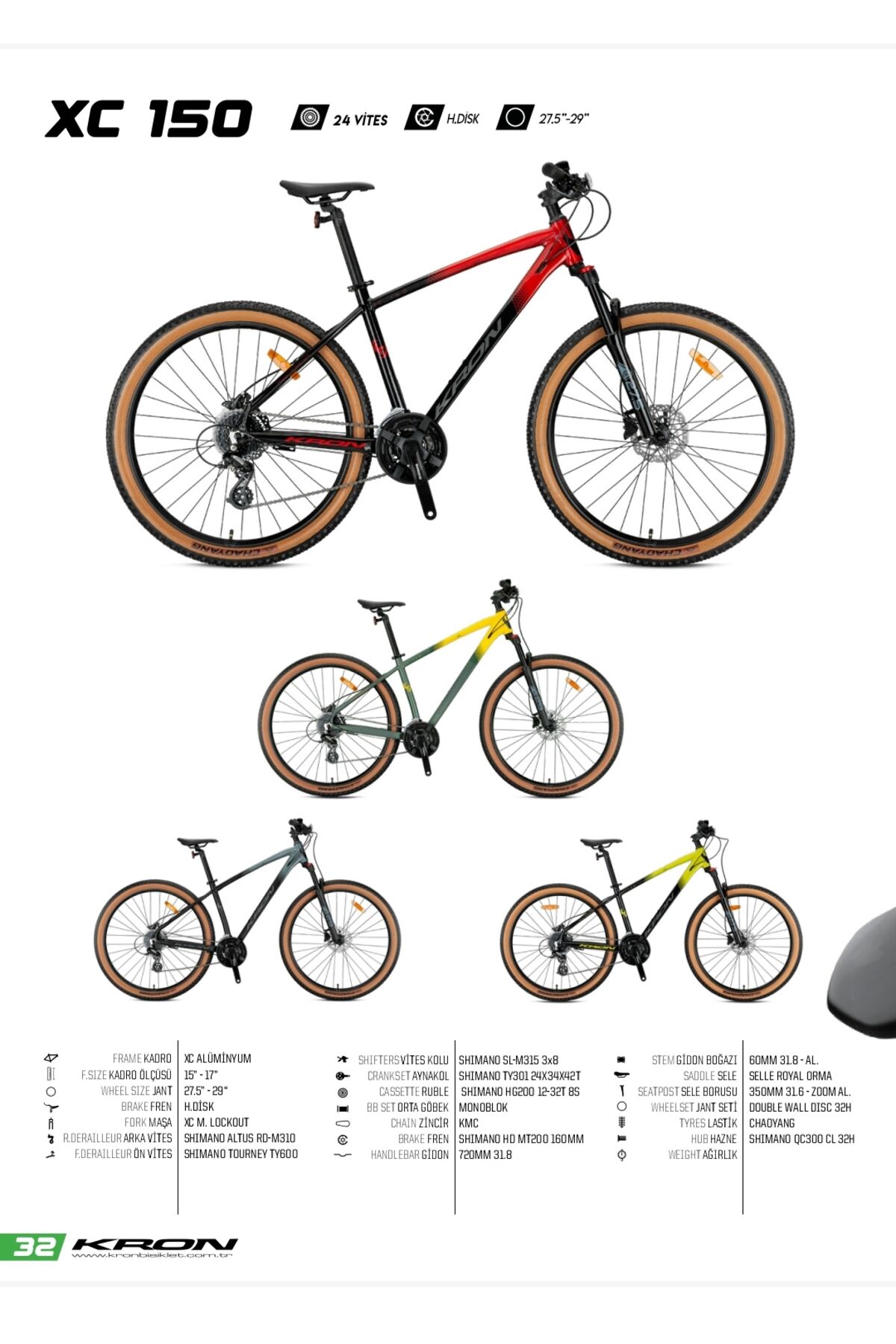 Kron XC150 2026 MODEL 29 JANT 15-17 İNÇ KADRO MTB 24 VİTES HİDROLİK DİSK FREN BİSİKLET
