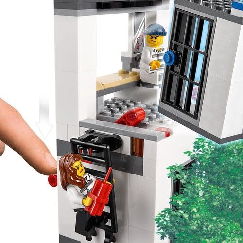 BOOMM! Ünlü hırsız Daisy Kaboom, LEGO® City Polis Merkezi hapishanesini patlatıp hırsız arkadaşlarını kaçırdı! Korkunç görünen bir bulldog ile birlikte kamyonlarıyla hızla uzaklaşıyorlar! Neyse ki Duke DeTain, Şef Wheeler, 2 polis ve sadık bir polis köpeği olay yerinde. Havalı insansız gözetleme aracını havalandır, motosiklet ve kamyonla takibe çık ve LEGO City kahramanlarının hırsızların yolunu kesmesine yardım et!