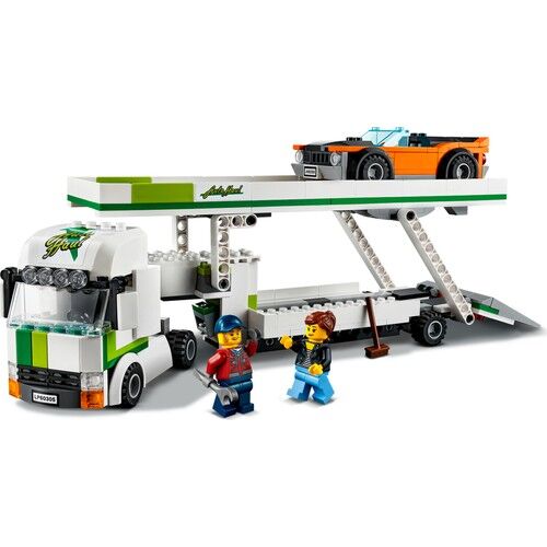 • Çocuklar römorkun üst zeminini ve arka rampasını indirerek, sete dahil havalı otomobil dahil en fazla 3 LEGO® City Harika Araçlar arabasını yükleyebilir ve taşıyabilir.